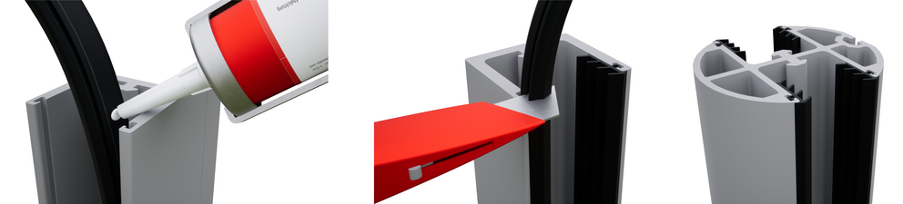 A falprofilok alapprofil-tömítéseit a szennyeződésekkel és az UV-sugárzással szemben óvni kell, pl. lefedéssel.