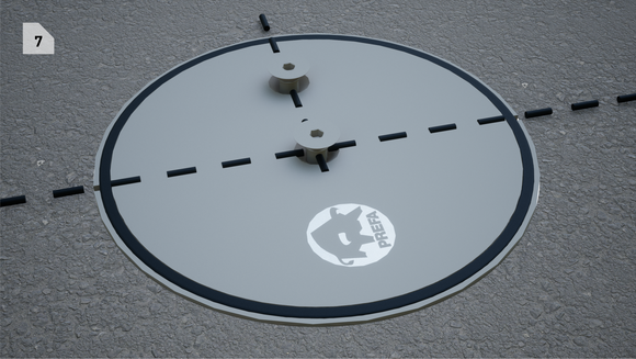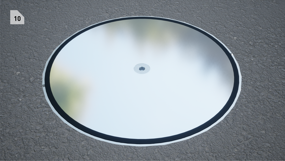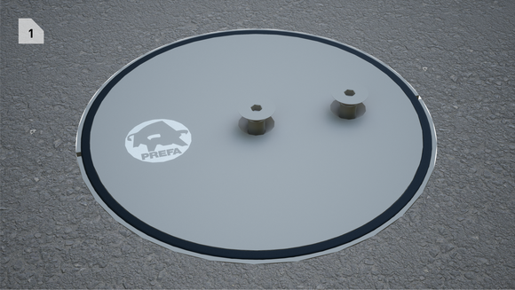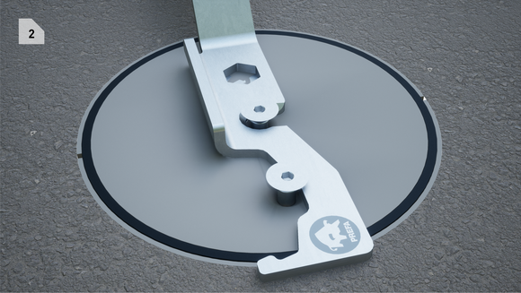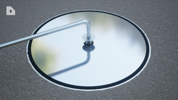 - Reteszelhető fedél (2 csavar) zárása: Helyezze be a fedelet a két csavarral a jelöléshez képest 90°-kal elforgatva a padlóhüvelybe,