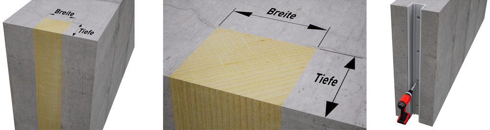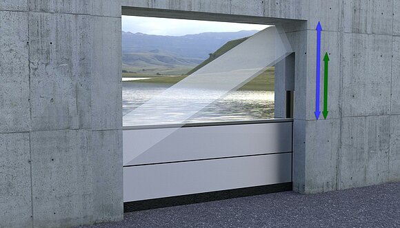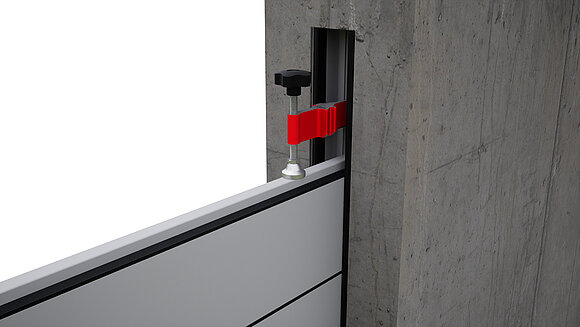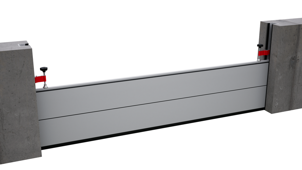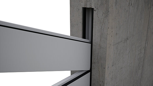 A „falnyílással egy síkban” szerelési változat esetén és felül zárt falazatnál szabad helyet kell biztosítani a gátgerendák befűzéséhez!