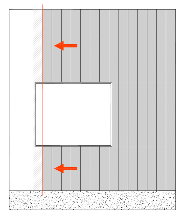 Függőleges és vízszintes elrendezés esetén az ablak körül célszerű az extrudált profilok fektetési szélességét átjelölni, ellenkező esetben fennáll a veszélye, hogy az elemek nem lesznek egymással egyvonalban.