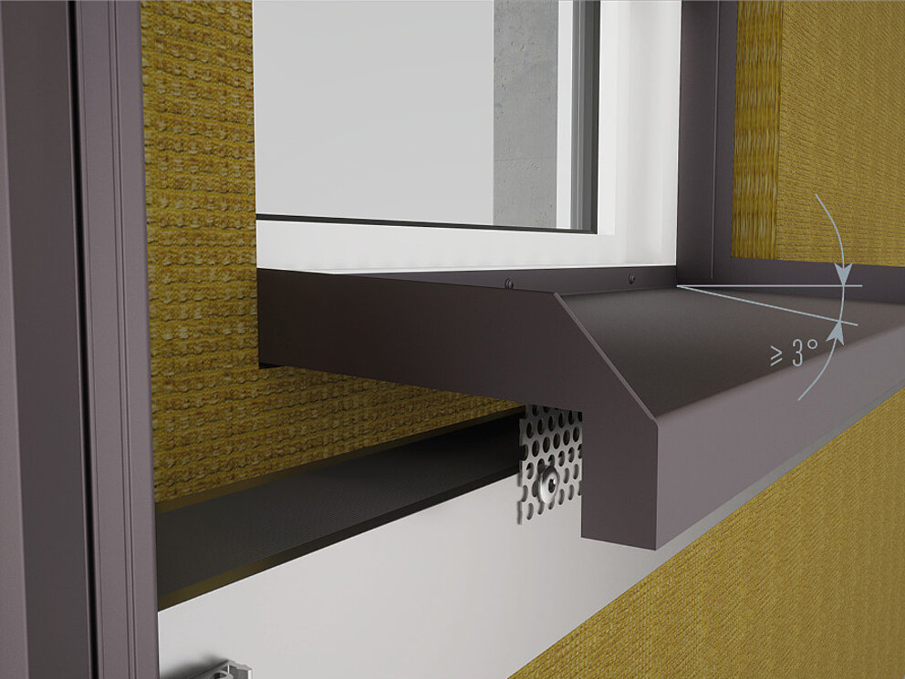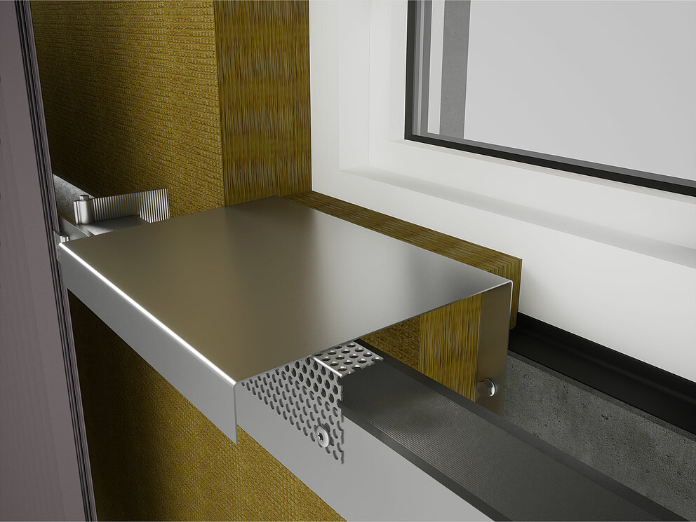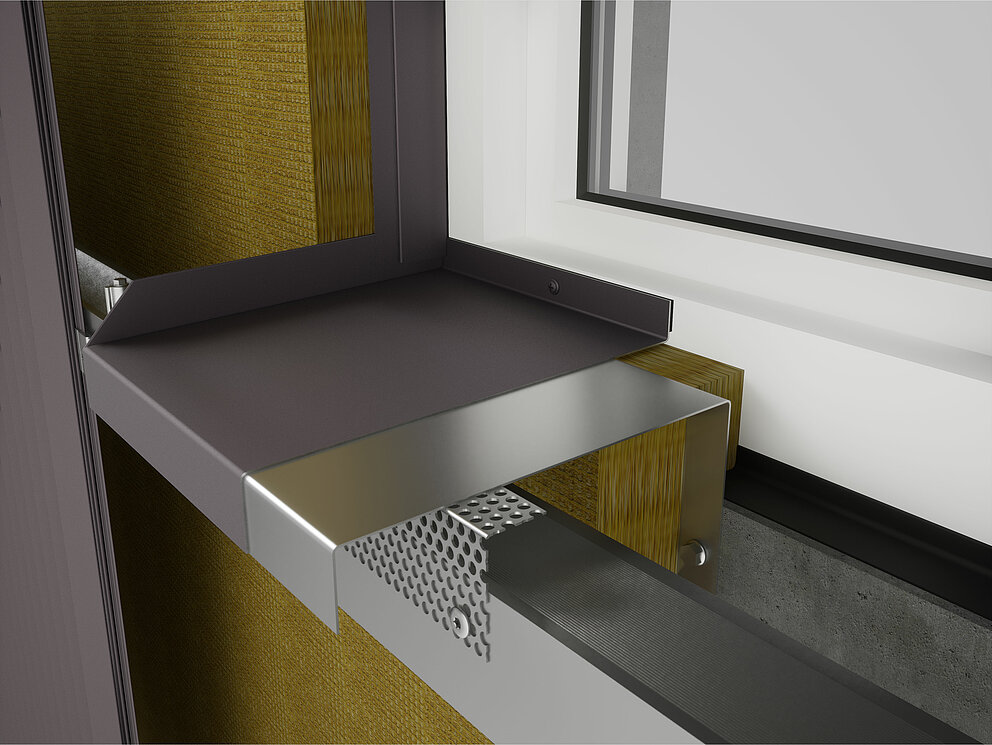 A párkány elkészítésének első lépésében a perforált lemezt és a tartószegélyt kell felszerelni. Győződjön meg róla, hogy az átszellőzés kiszellőző keresztmetszete akadálymentes.