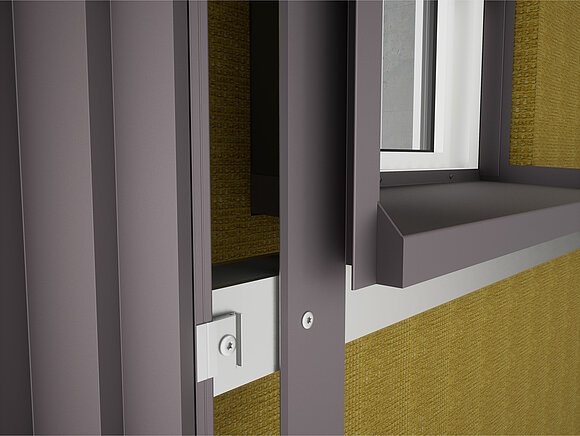 Végül az ablak bal és jobb oldalán csavarozza fel az alátétszerkezetre az ablakkáva profilhoz való tartóprofilokat. Ezzel egyidejűleg rögzítse az ablakkerethez vagy a falazathoz az ablakkáva profilhoz és az ablaktokhoz való csatlakozó lécet.