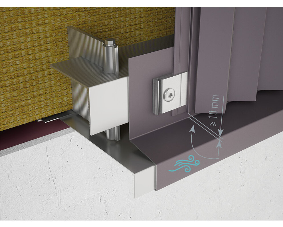 Ahhoz, hogy az extrudált profiloknál az átszellőztetés elegendő levegőellátást biztosítson, a profil alsó éle és a párkánylemez között legalább 10 mm távolságnak kell lennie.