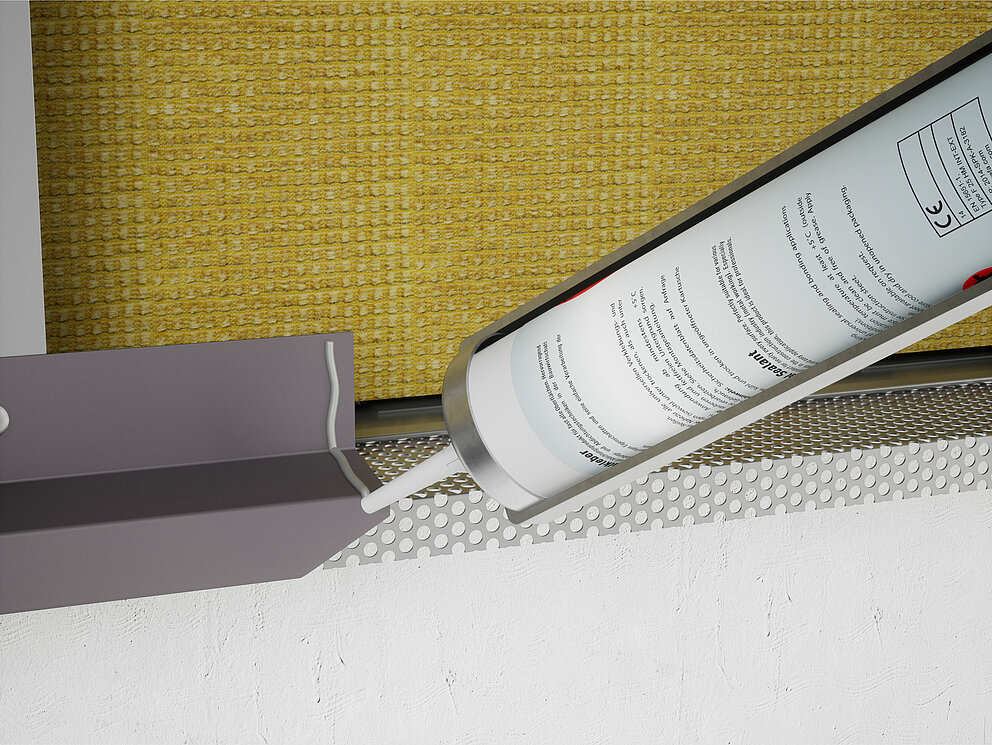 Nagyobb épületméretek esetén az anyagtágulás miatt kerülje az indítóprofilok és szellőző profilok ütköztetett illesztését. Az anyagtágulás miatt tartson 5–10 mm távolságot (az indítóprofil hosszától függően).