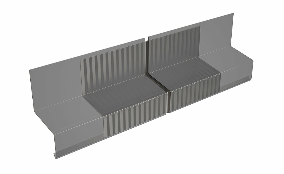 Az alátétszerkezet elkészülte után szerelje fel a csatlakozó lécet, a takarószegélyt, a perforált lemezt és a párkánylemezt. A párkánylemez illesztésének kialakítását átfedéssel és ragasztással kell megvalósítani. Az alatta lévő (rejtett) párkánylemezt be kell vágni, hogy a felette lévő párkánylemezt fel lehessen szerelni.