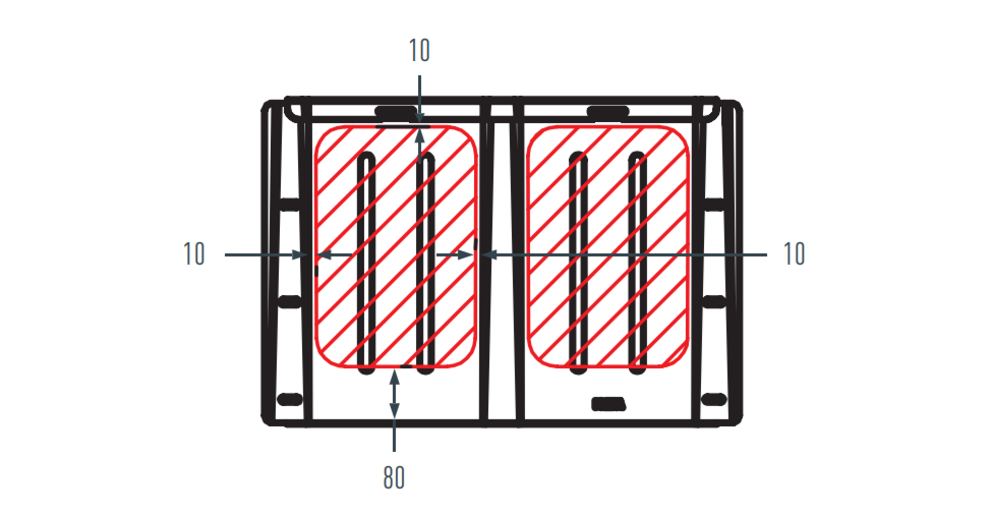 Ha valamit a homlokzatra kell szerelni (pl. lámpákat), akkor a beépítésnél ügyeljen a Classic elemet engedélyezett szerelési területére. Ha nem lehet betartani a szerelési területet, akkor egy alátétlemezt kell befalcolni.