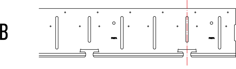 Az első zsinórozás a homlokzati felület közepén, egy oldalsó lezárásban vagy épületsarkon helyezkedjen el. A párkányelem kezdete a berajzolt panelelrendezés alapján határozható meg. A derékszög kitűzését vagy a horony közepén vagy középen két horony között kell elvégezni, a vízszintes zsinórozást pedig mindig 419 mm-re a lemez felső szélétől. A függőlegesen elvégzendő zsinórosztásnak 301 mm-rel oszthatónak kell lennie.