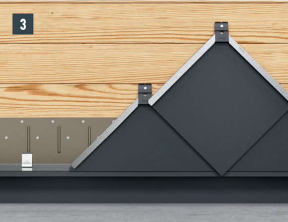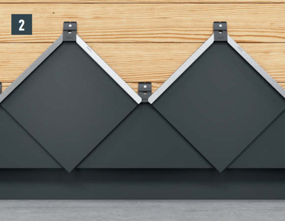 Minden 29 x 29 homlokzatburkoló rombuszt hafterrel és a mellékelt 2,8/25-ös bordás szeggel kell rögzíteni.