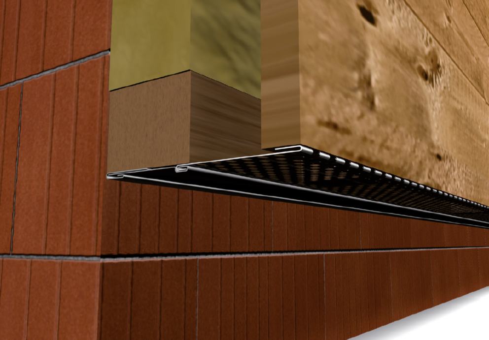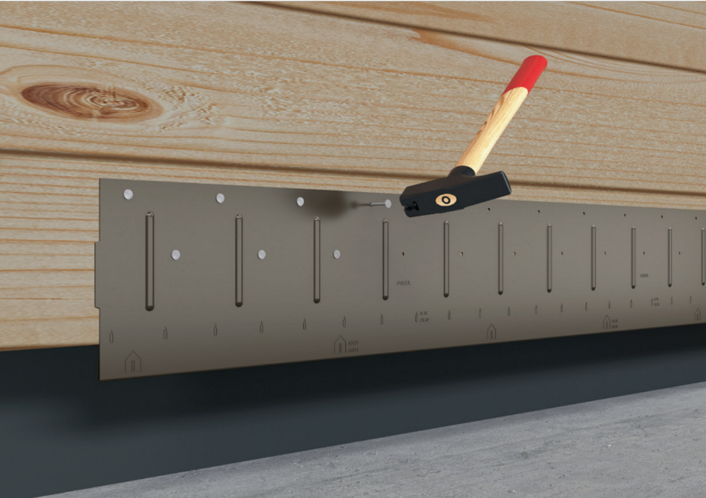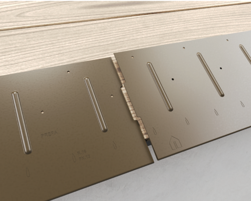 Ha felszerelték a szerelt, átszellőztetett homlokzat lábazati profiljait (perforált lemez és takarólemez felhelyezése), akkor elkezdheti a párkányelem szerelését. A párkányelem mindig egy PREFA kiselemes termékekkel készült homlokzat kezdete. A párkányelem pontos beszerelése azért fontos, mert ez nagy mértékben meghatározza a homlokzat megjelenését.