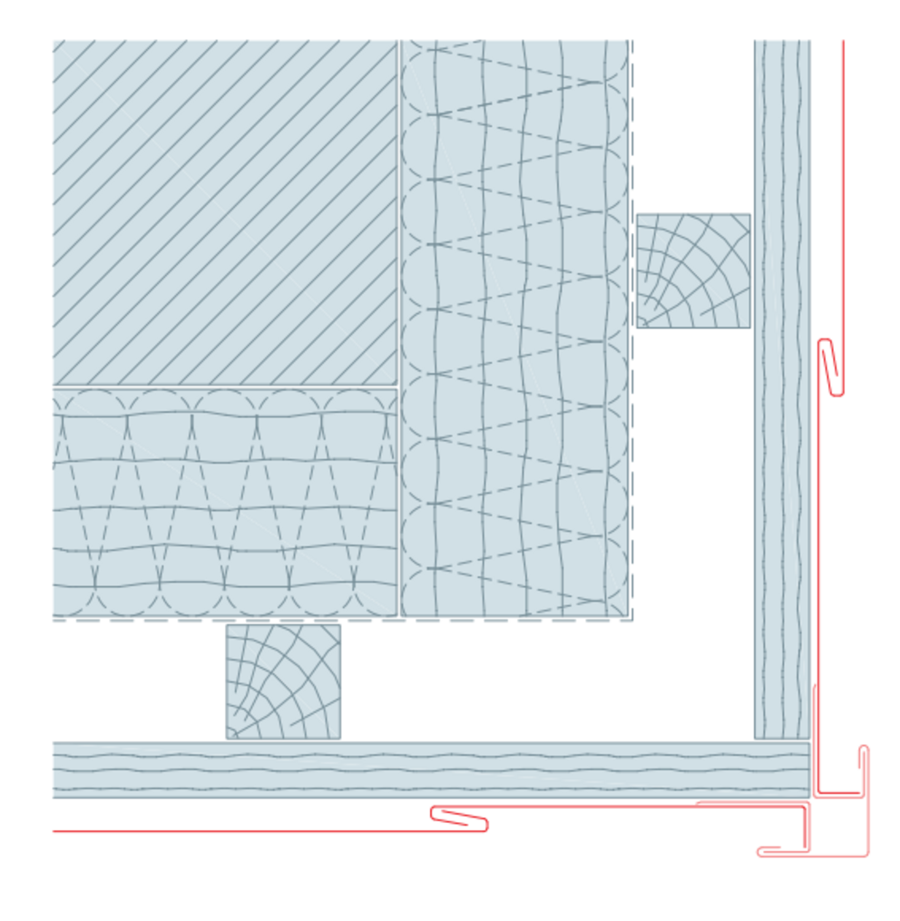 A belső és külső sarkokat leggyakrabban két zsebes profillal és egy sarokprofillal kivitelezik. Ügyeljen a zsebes profilok teljesen függőleges és tágulás szempontjából megfelelő szerelésre, valamint a fix- és csúszópontok elrendezésére.