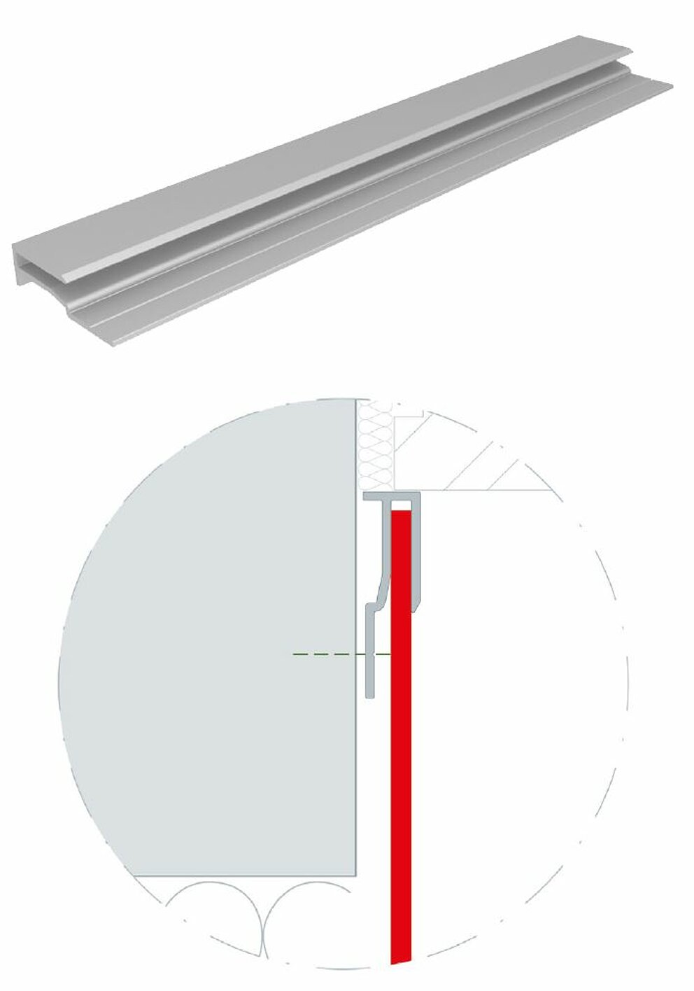 Az alumínium kompozit lemezekhez készült, mindkét, egyenként 6 200 mm hosszú, extrudált peremprofil gyárilag porszórt bevonattal látható el.