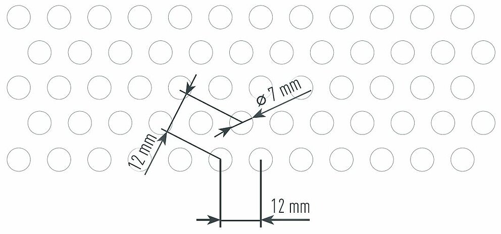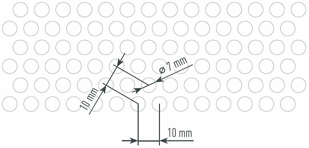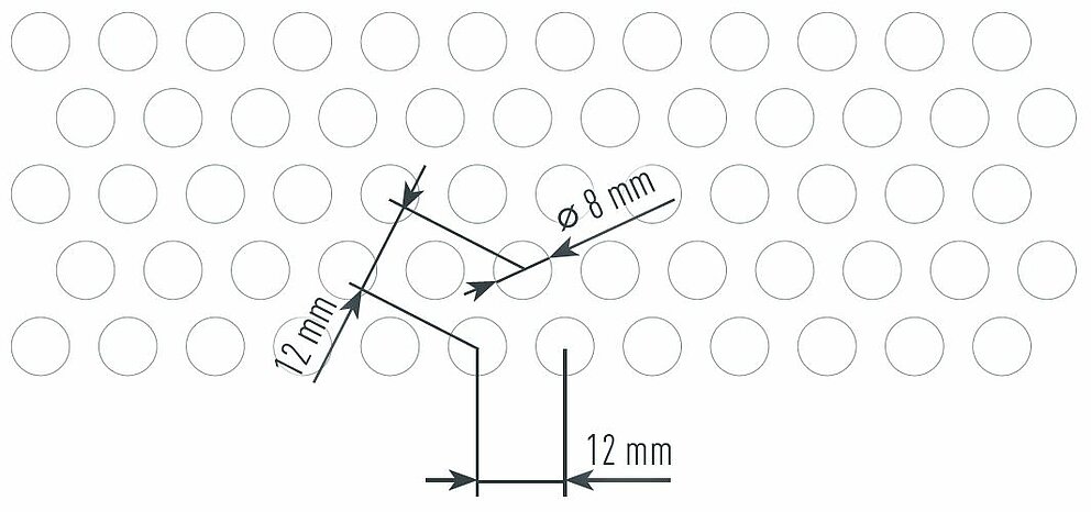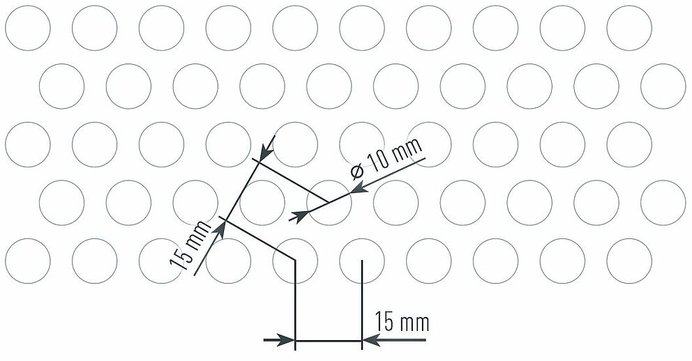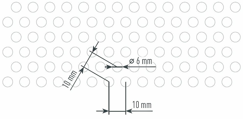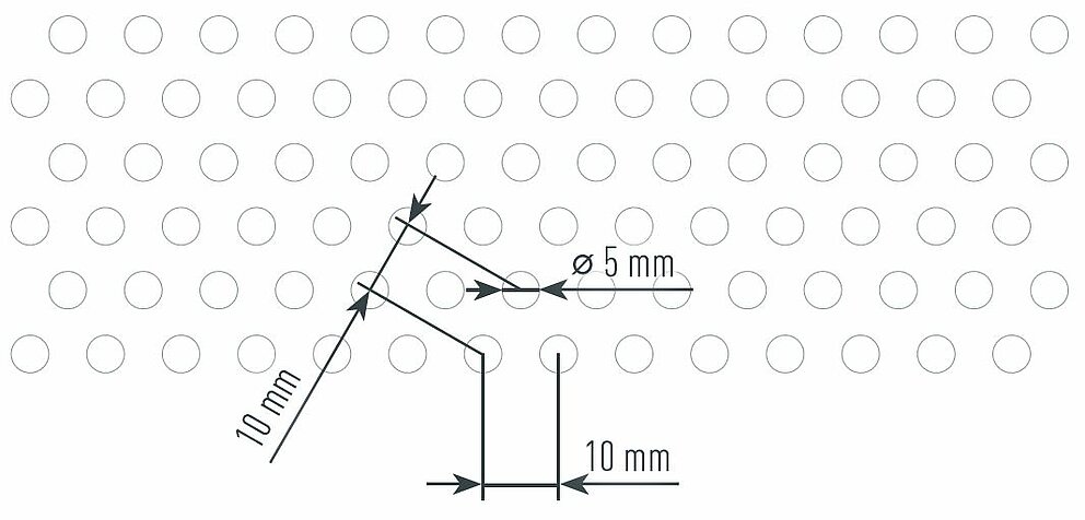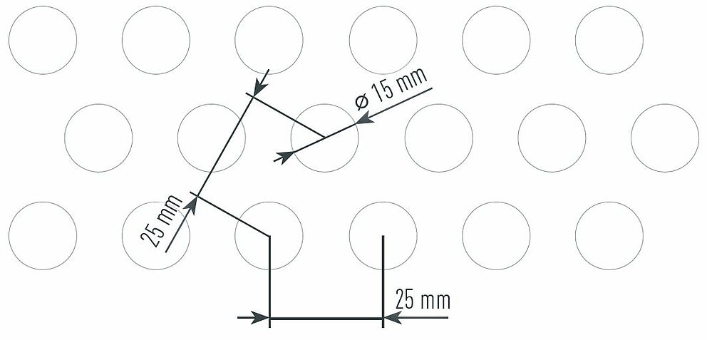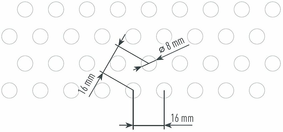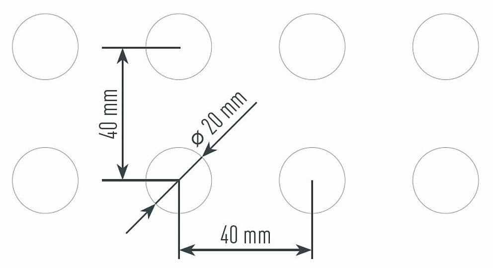 A perforált PREFABOND kompozit lemezek egyenletes lyukmintával rendelkeznek. A mag ásványszerkezete miatt a perforálás stancológéppel az A2-magú PREFABOND számára nem ajánlott.