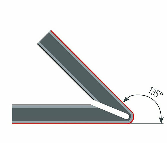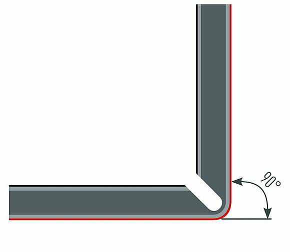 Ügyeljen arra, hogy a kompozit lemezek az élhajlítás után kissé visszapattanhatnak. A gyakorlatban ez azt jelenti, hogy az élhajlítást a kívántnál kissé erősebbre kell hajlítani, hogy a visszapattanás után tökéletes mérettartás legyen. Az élhajlítás legkisebb lehetséges oldalhossza 20 mm.