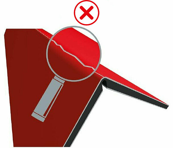 Ha a hajlítást alacsony hőmérsékleten (≤ 15 °C) végzik, az a bevonat fátyolszerű megjelenését okozhatja. Ennek eltávolításához melegítse fel a lemezt legalább 20 °C-ra.
