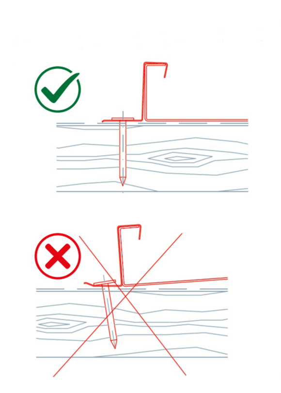 Vastagabb elválasztórétegek esetén szükség szerint hosszabb szegeket vagy csavarokat kell használni.
