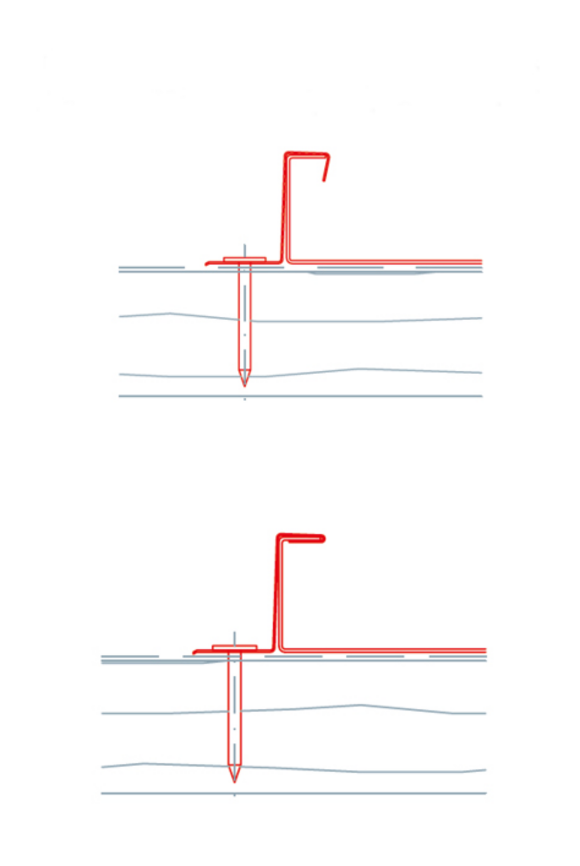 Az állókorcos tetőfedések rögzítéséhez rozsdamentes acélból készült haftereket, szegeket, csavarokat vagy szegecseket kell használni. A PREFA ezért különböző hosszúságú Niro bordás szegeket kínál a PREFALZ burkolatok rögzítéséhez.