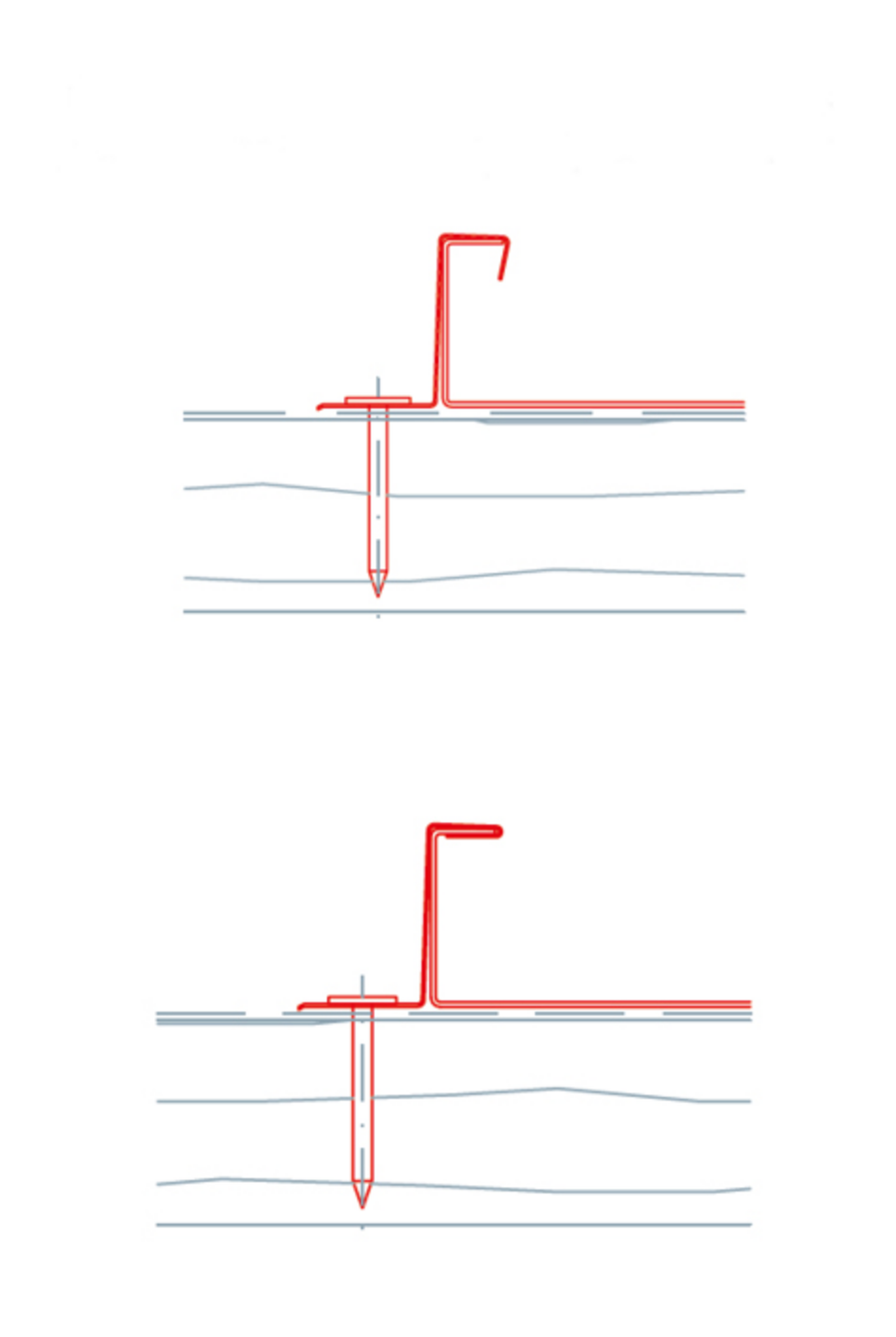 Mielőtt a fedősávot a kis állókorc mentén Niro-hafterekkel a deszkázathoz rögzítenék, előbb a beakasztott fedőoldalon a korcot teljesen zárni kell.