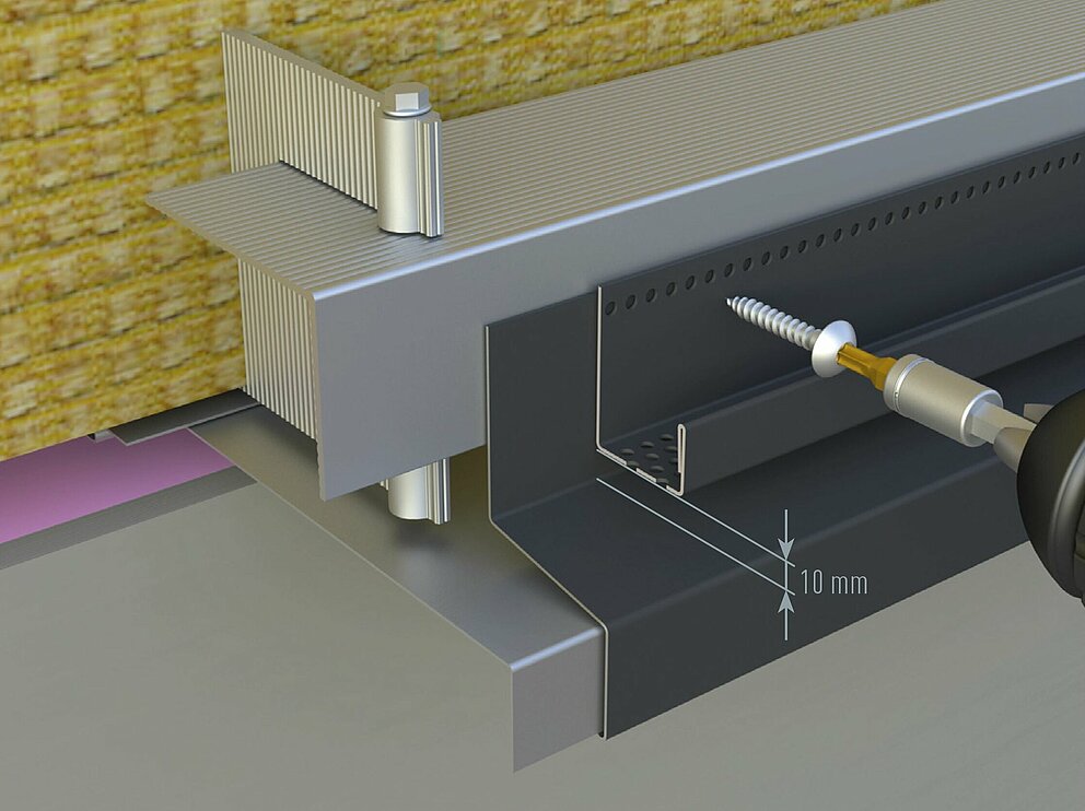 Fixpont esetében az önfúró csavart közvetlenül az indítóprofilon, ill. a szellőző profilon keresztül kell behajtani. Csúszópont esetében egy hosszlyukcsípővel készítse el a szükséges hosszúkás lyukat.