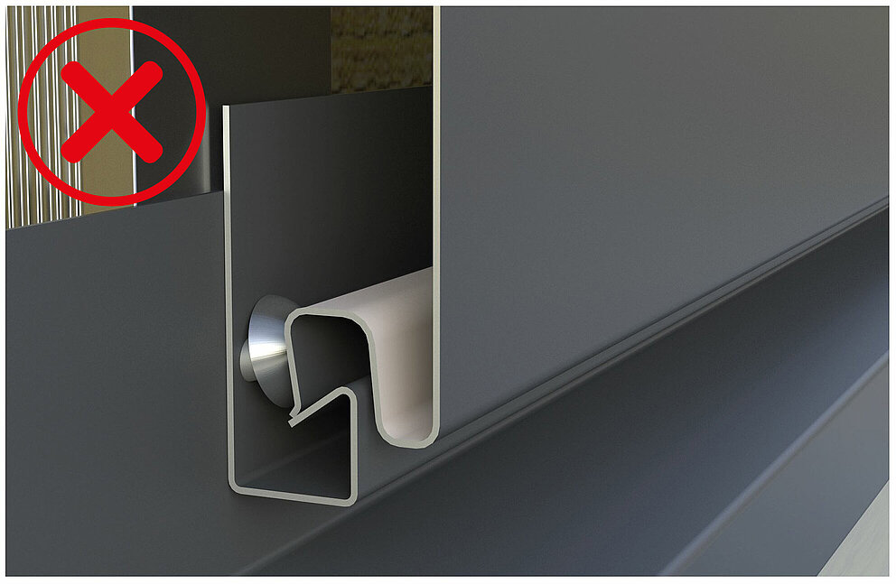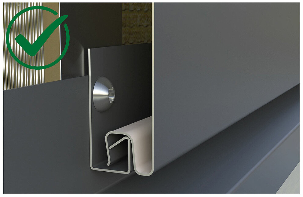 A szellőző profil és a véglehajtásos Siding felhasználásakor ügyelni kell arra, hogy a véglehajtás és a szellőző profil között legalább 5 mm távolság be legyen tartva. Ha a véglehajtás közvetlenül a szellőző profilnál van, akkor nincs elegendő beszellőzési keresztmetszet és nem működik az átszellőztetés.