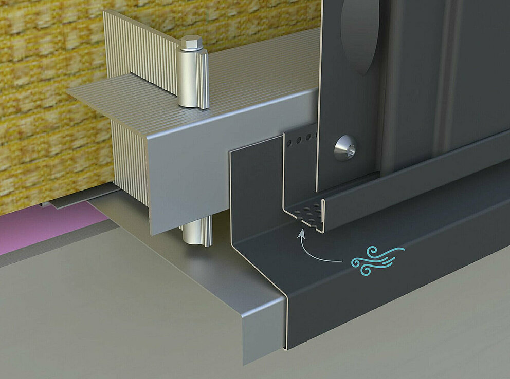 Ahhoz, hogy az átszellőztetés elegendő levegőellátást biztosítson a szellőző profilnál, a szellőző profil és a párkánylemez közötti távolságnak legalább 10 mm-nek kell lennie.
