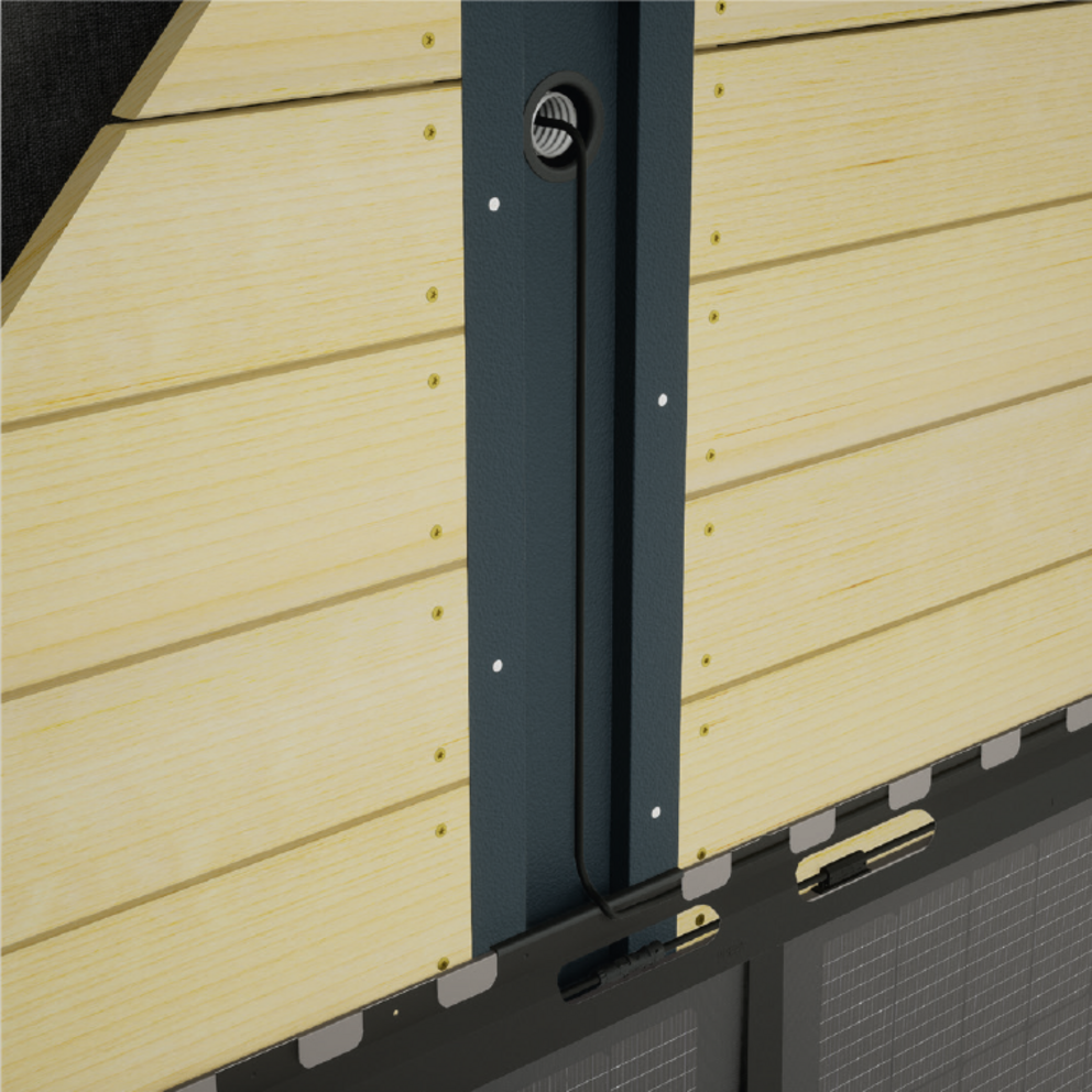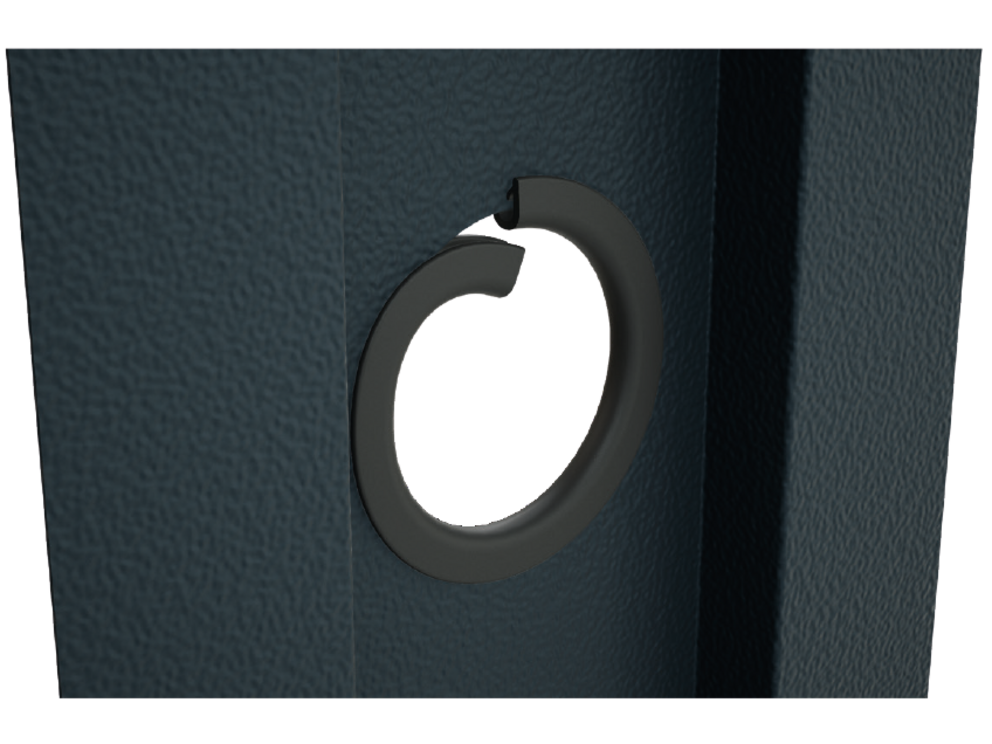 A napelemes tetőfedő lemezekhez mellékelt élvédőt a kábelcsatornának egy koronafúróval készített nyílásába kell behelyezni. Ez megvédi a kábeleket attól, hogy a szabad lemezélek megsértsék. Az élvédő behelyezésével biztosítható a kábelek biztonságos elvezetése, és megakadályozható a kábelek sérülése mozgás vagy rezgések során.