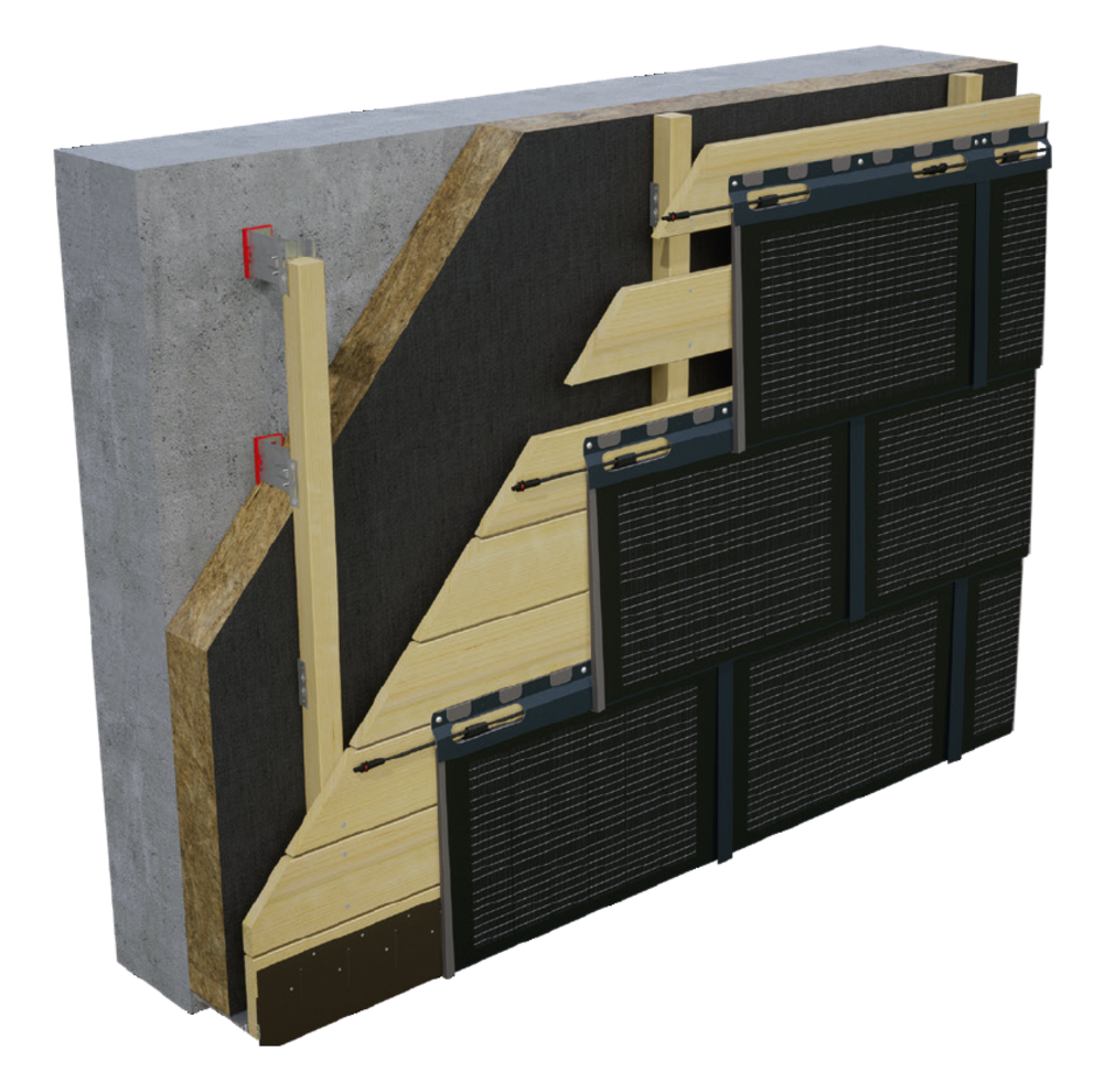 A homlokzaton a napelemes tetőfedő panelek ritkított deszkázatra (legalább 24 mm) is szerelhetők. A ritkított deszkázat építésénél ügyeljen arra, hogy a rögzítőléc alatt mindig legyen deszka és a 420 mm-es osztás be legyen tartva.