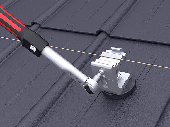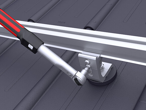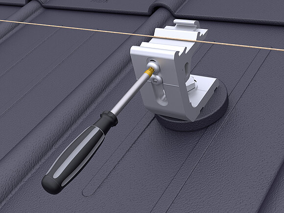 A PREVARIO 3.S egyenként kívül elhelyezkedő sínrögzítőit középmagasságra kell állítani. Feszítse meg a szerelőzsinórt, majd állítsa be a többi sínrögzítőt a tetővel párhuzamosan és annak magasságában. A már beállított sínrögzítők felső csavarját 20 Nm forgatónyomatékkal kell meghúzni.