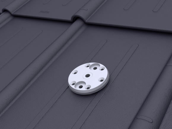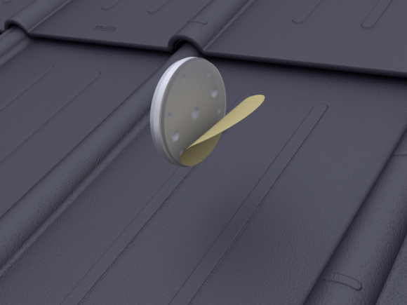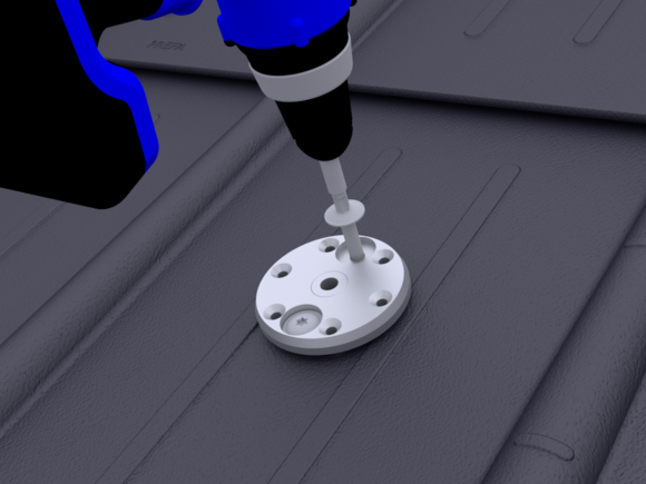 Talpelem csavaros rögzítése 6-6 rögzítőcsavarral ⌀ 6,0×40/24 mm, amíg a felülettömítés a tetőfedő elemre és alátétszerkezetre lesz préselve. Megfelelő kivitelezés esetén a felülettömítés enyhén kidudorodik (fúrógép bitfeje: T25).