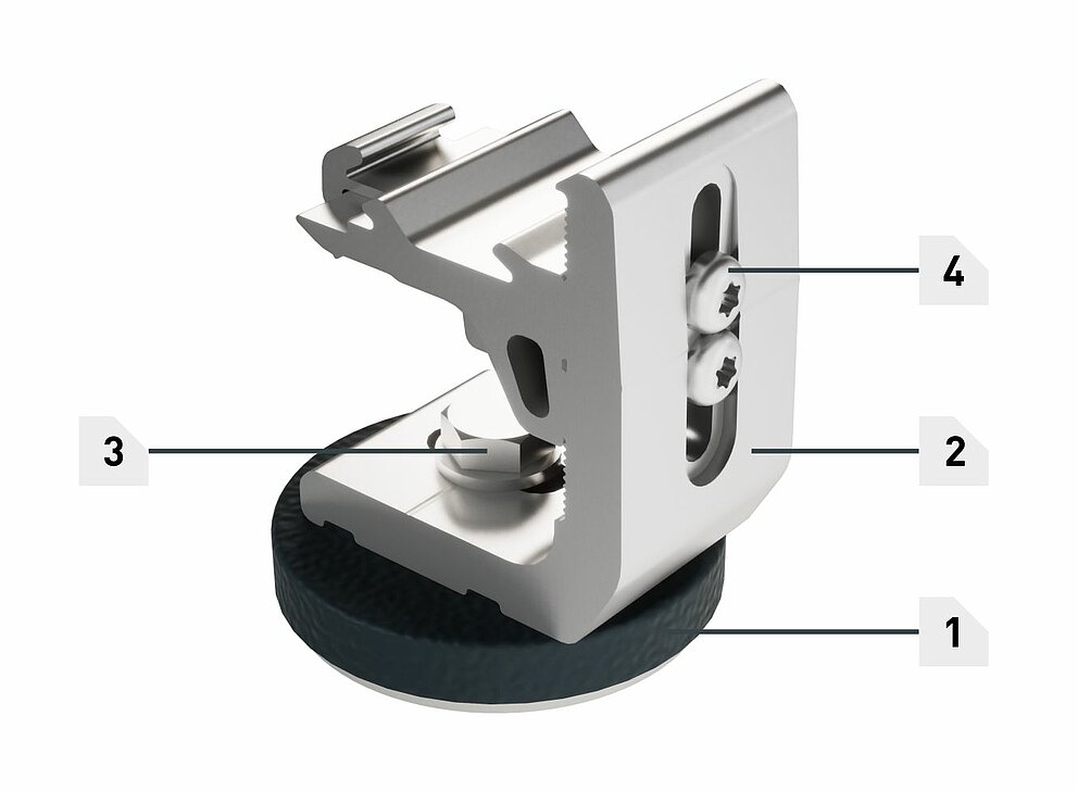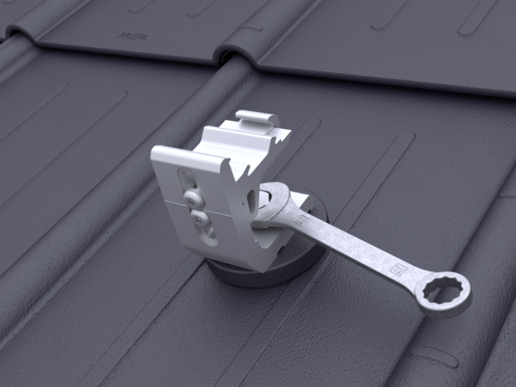 Helyezze fel a takarókupakot, illessze az alaptestet a talpelemre, majd rögzítse a hatlapú csavarral (18-as villáskulcs). A PREVARIO 3.S alkalmas PREFA kiselemes fedéseken való szerelésre.