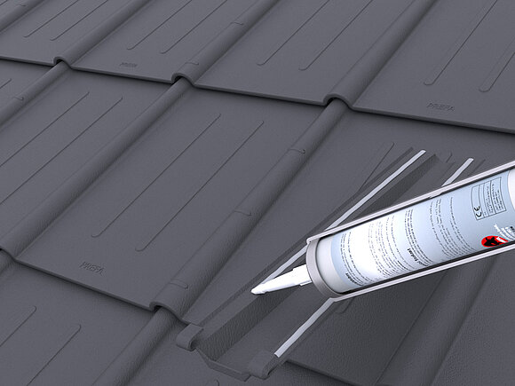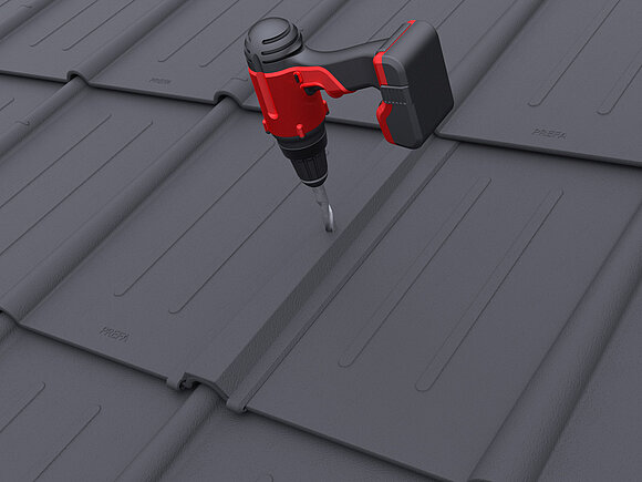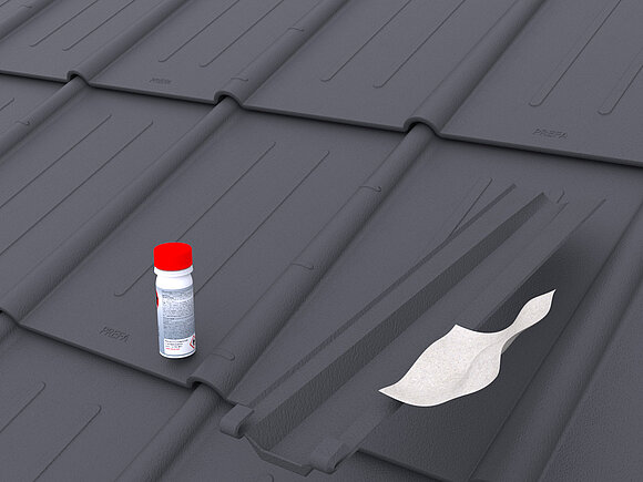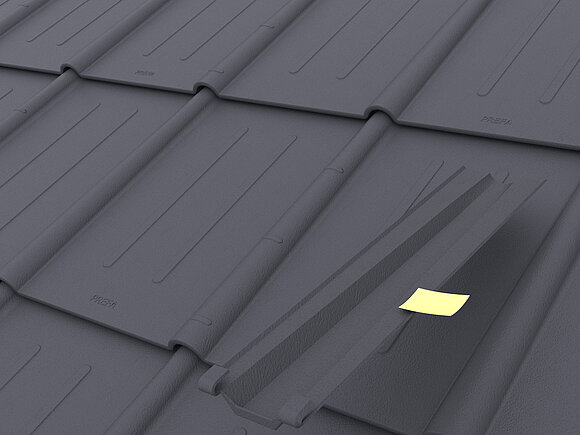 Ragasztási felületek megcsiszolása és megtisztítása a Sunny speciálon és a Classic elemen. Speciális ragasztót vigyen fel a megcsiszolt és megtisztított Sunny speciálra. A Sunny speciált az átfedési vagy középső hullám területén tolja be a Classic elemek felső korcába és hajtsa lefelé. A Sunny speciált amennyire lehetséges tolja felfelé a korcba.