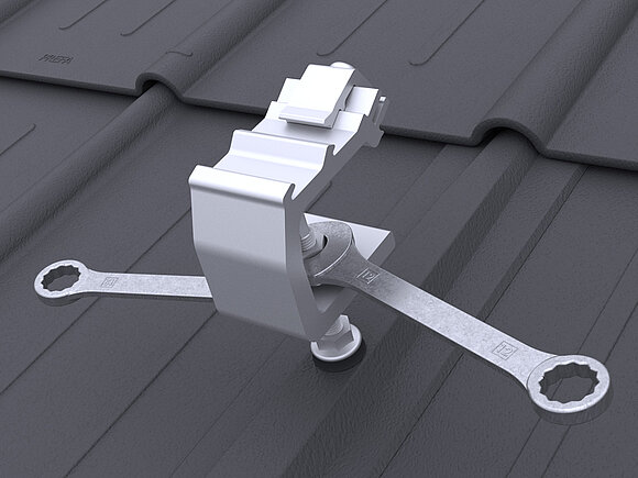 Ha pontosan a szarufa fölött (az állványcsavar szerelési területén) van a Classic elemek átfedési vagy középső hulláma, akkor az alátétlemez beépítése helyett a Sunny speciál alkalmazható.