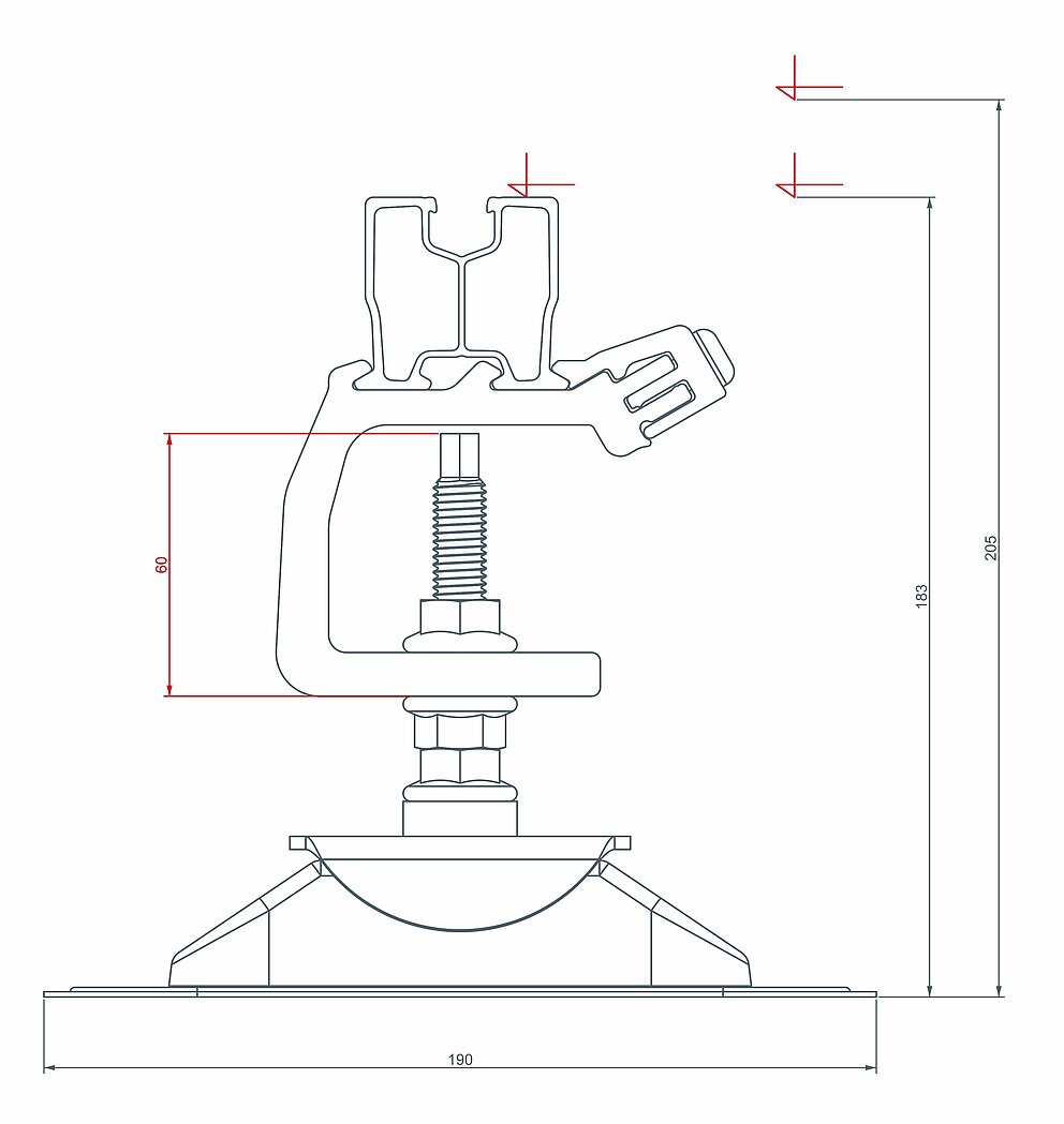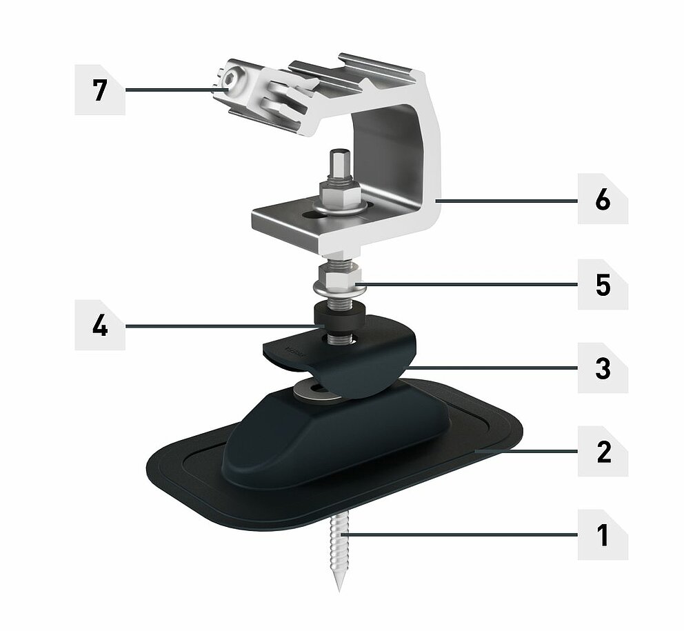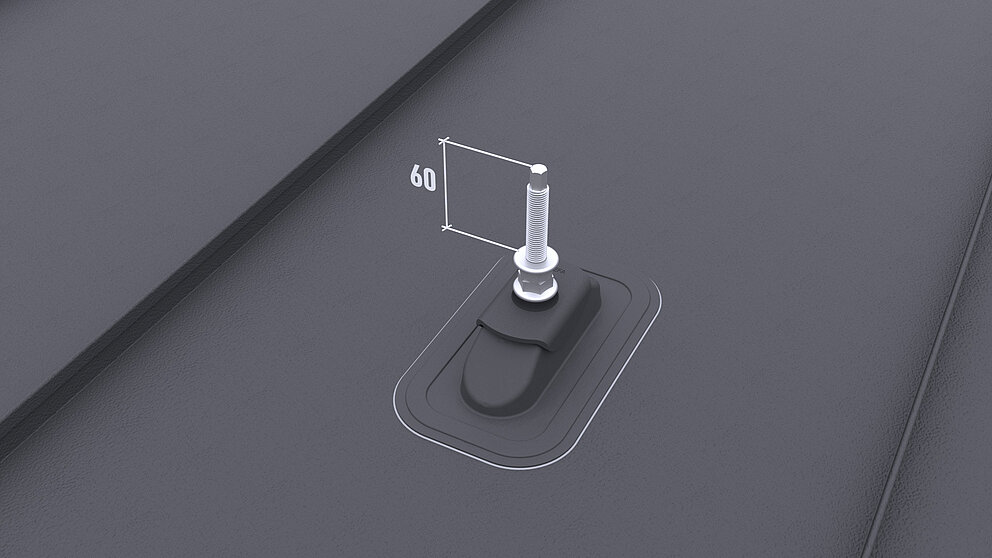 Anya becsavarozása, amíg az EPDM-tömítés kifelé kidudorodik (18-as villáskulcs). Szerelje fel a második anyát, és tekerje egészen ütközésig lefelé. Az állványcsavart a második anya felső élétől (síntartó felfekvése) mérve 60 mm-rel felfelé mérje ki, és vágja le. Szerelje fel a síntartót, és a megfelelő magasságban (a többi napelemtartóhoz igazítva) két villáskulccsal húzza meg (18-as villáskulcs).