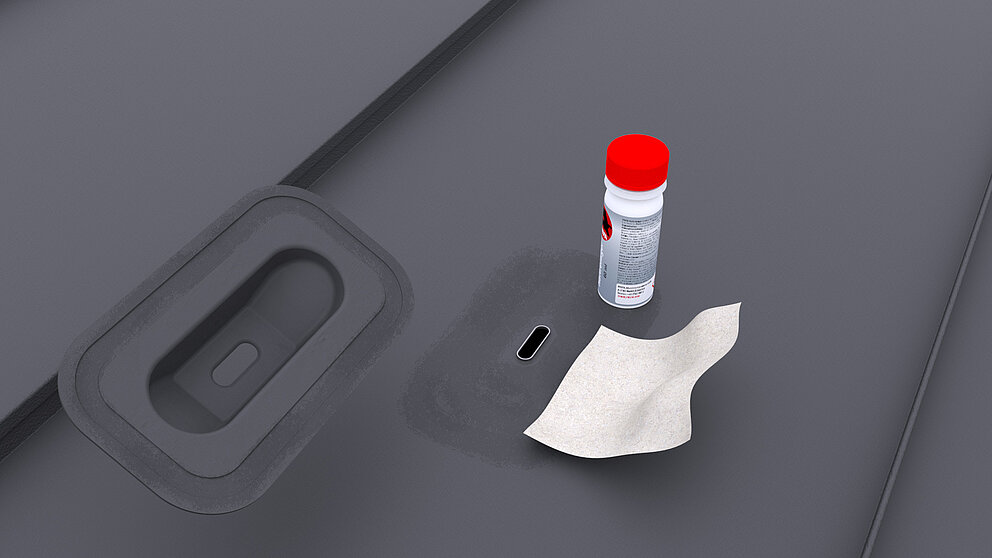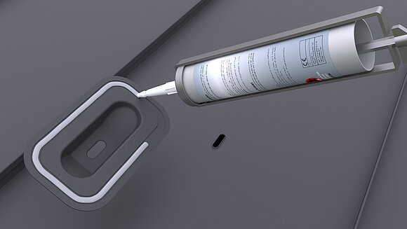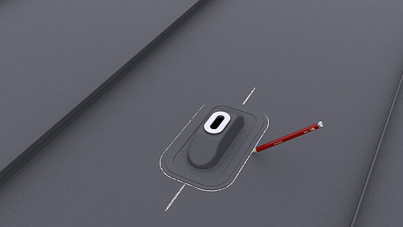 A ragasztási helyet a tetőfedő elemen és a PREVARIO Sunny napelemtartón csiszolja meg. Ovállyuk vagy furat felperemezése. A megcsiszolt ragasztási helyet felülettisztítóval tisztítsa meg. Vigyen fel ragasztócsíkot (⌀ 10 mm) a megcsiszolt és megtisztított Sunny-ra. Központosan préselje rá a PREVARIO Sunny-t. Kalotte felhelyezése, és állványcsavar becsavarozása fúrógéppel (9-es dugókulcsbetét). Behajtási mélység a tartó alátétszerkezetbe (szarufa): legalább 80 mm.