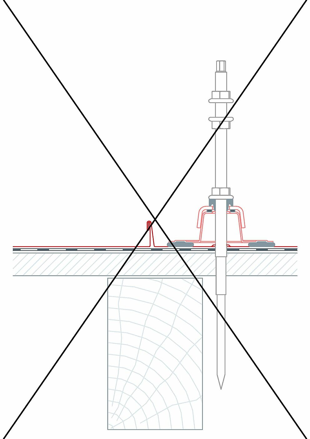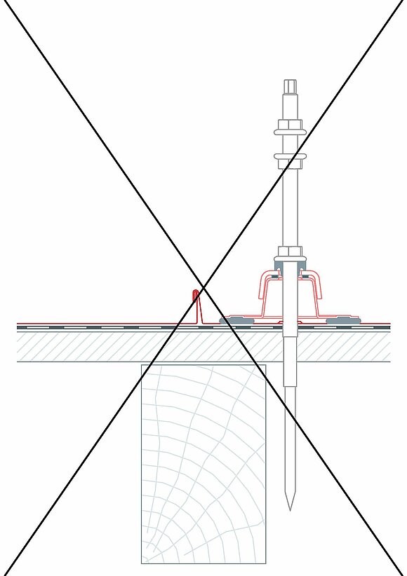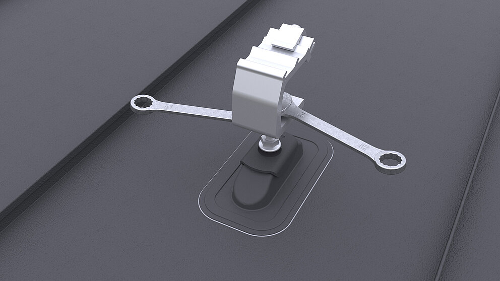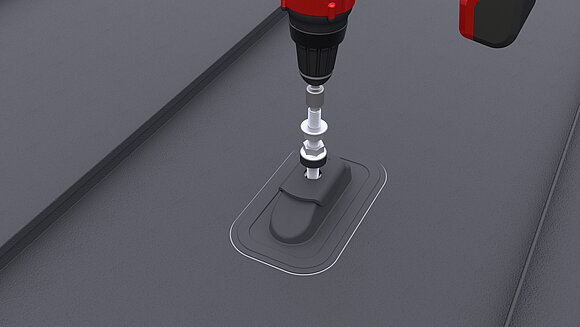 Ha az EPDM-tömítés nem a állványcsavar sima szárán van, hanem az M12-meneten, akkor kiegészítő intézkedés szükséges a csavar és a gumitömítés közötti tömítéshez.