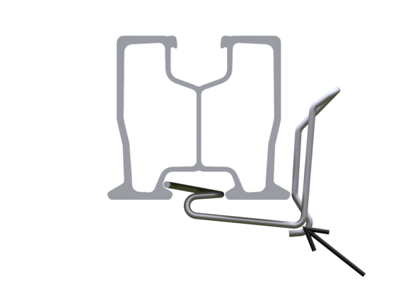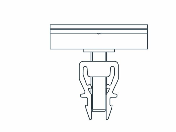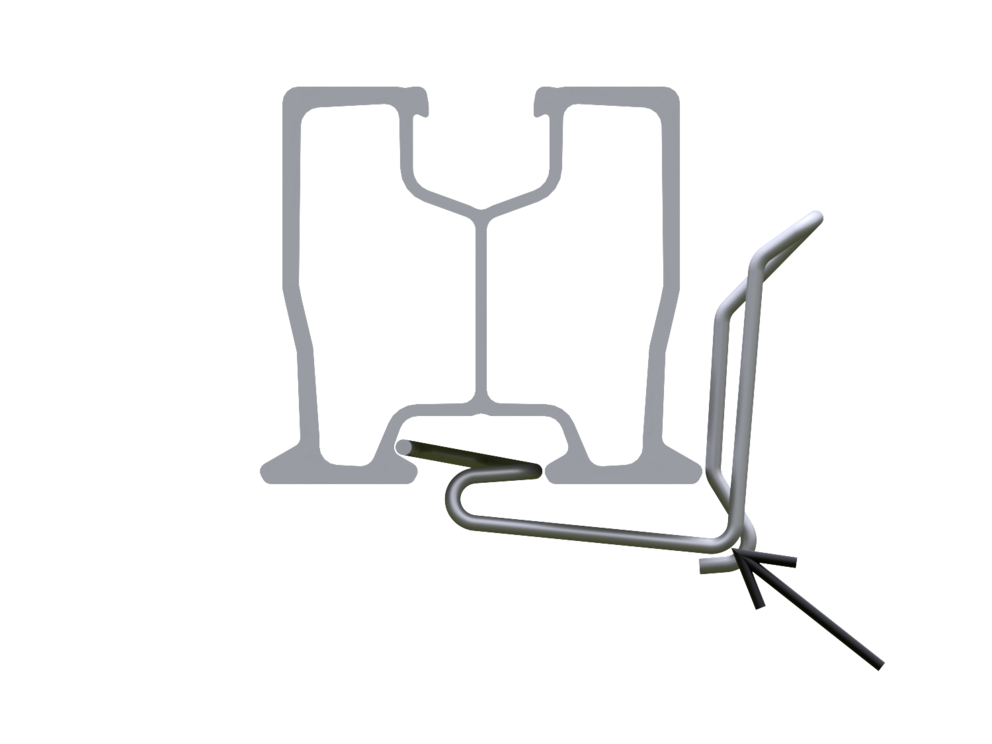 A kábelrögzítőt alulról ferdén illessze a sín nútjához, majd felfelé irányuló ferde nyomással pattintsa be a sínbe.