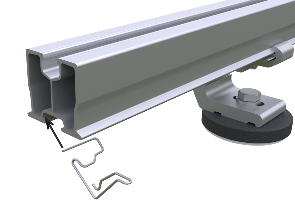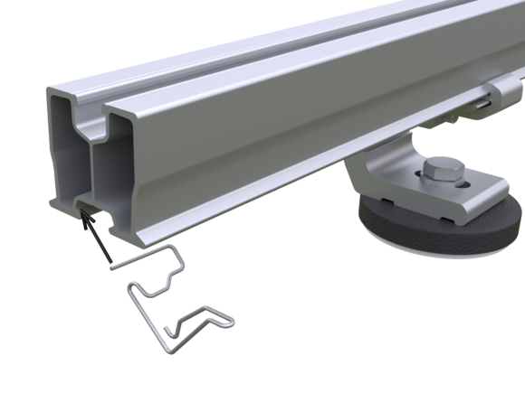 A fotovoltaikus modulok leesésének megakadályozása érdekében a PREVARIO napelemes szerelőrendszer modul leesésgátlókat alkalmaz. Ennek során a tetőfelület legalsó modulsorában modulonként két modul leesésgátlót kell a felső modulsínre rögzíteni. Így a lezuhanó modul a keret felső élénél a biztosítón fennakad. Egy működésbe lépett biztosító nem jelent tartós szerelést. Az érintett modulokat haladéktalanul újra kell szerelni.