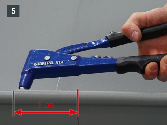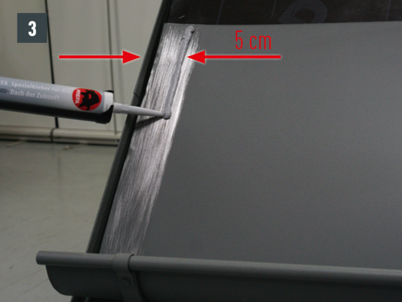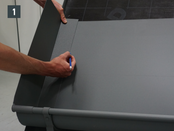 Ügyeljen arra, hogy a tető felőli csatornavisszahajtás 10 mm-rel magasabban legyen, mint az ereszcsatorna elülső pereme.