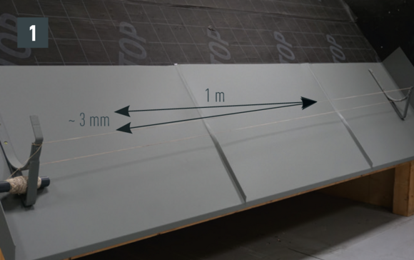 A PREFA fekvő ereszcsatornát általában – vízszintes vonalhoz mérten – minimum 3 mm/m lejtéssel kell tervezni. Különleges esetekben azonban a PREFA fekvő ereszcsatorna lejtés nélkül is tervezhető.