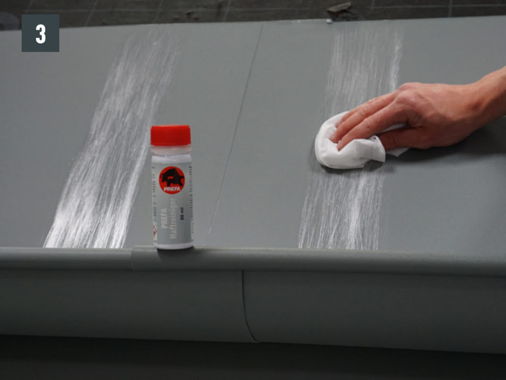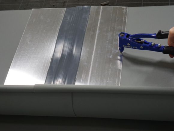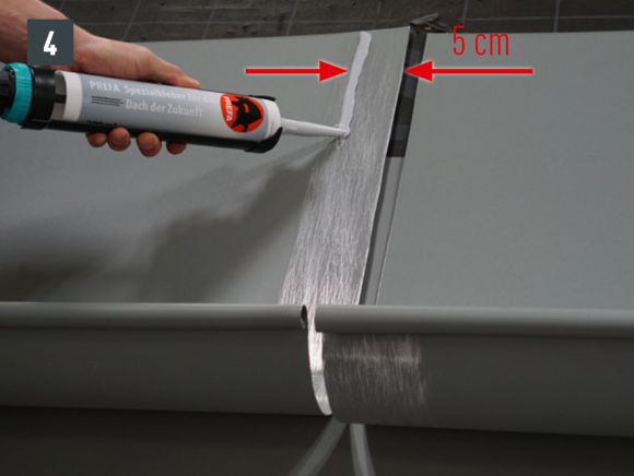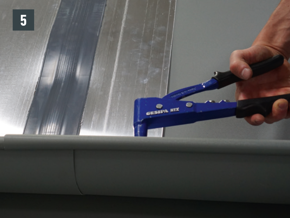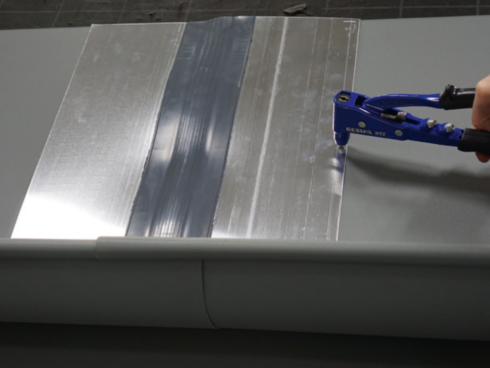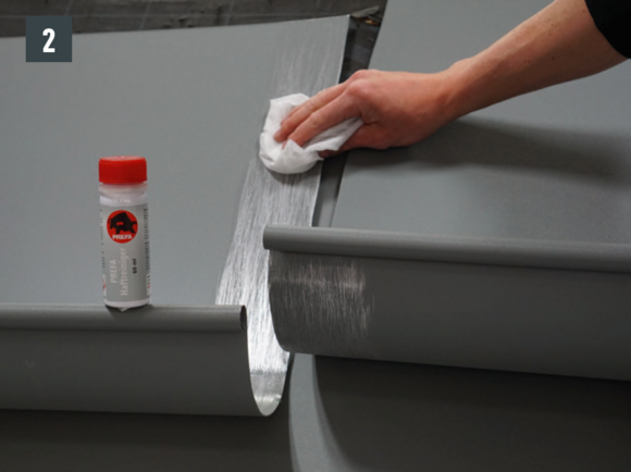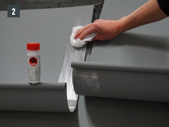 A csatornaelemek összeépítését ragasztással vagy szegecseléssel lehet elvégezni. A szegecselt kötéseket PREFA speciális szilikonnal is le kell tömíteni.