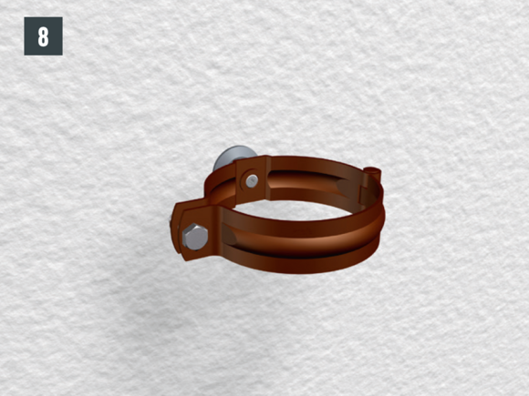 A lefolyócsövek rögzítése csőbilincsekkel történik. A csőbilincsekhez való megfelelő rögzítőelemet az aljzatnak (homlokzatfelületnek) megfelelően kell kiválasztani.