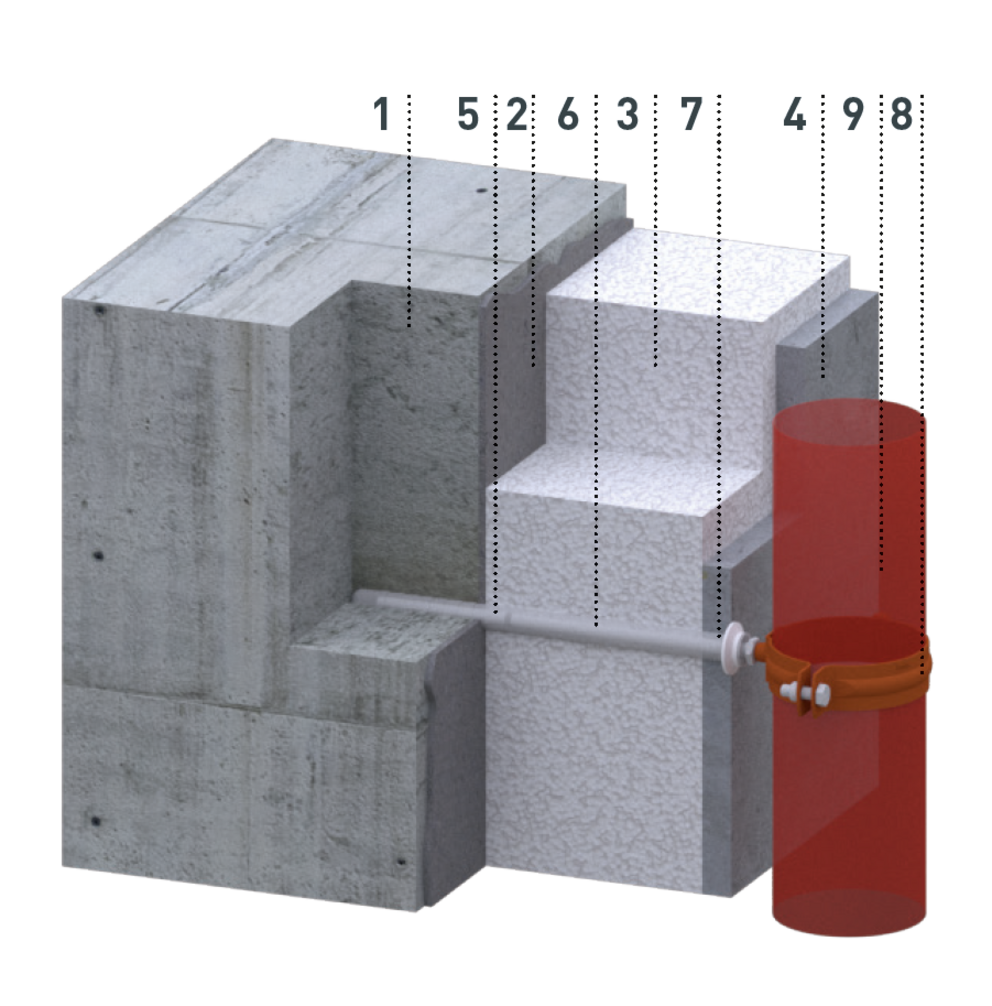 Meglévő, hőszigetelt homlokzatokon való felhasználáshoz (szigetelési vastagság akár 50–200 mm, minimális rögzítési mélység a falazatban: 70 mm).