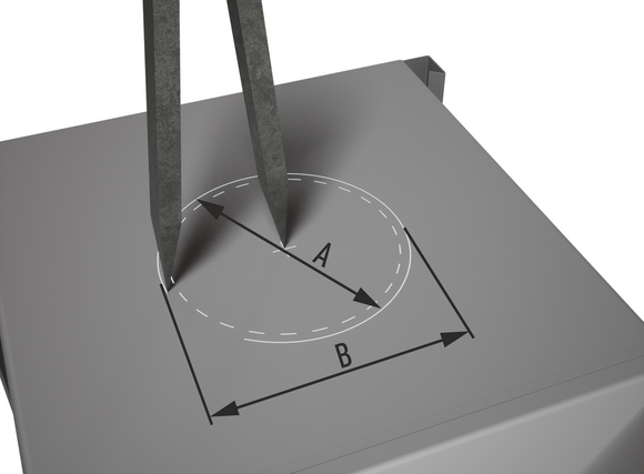 A vízgyűjtő üst hátoldalán jelölje be és vágja ki a csőátmérőt, amibe a tömítési ráhagyást is bele kell számolni (1. ábra).