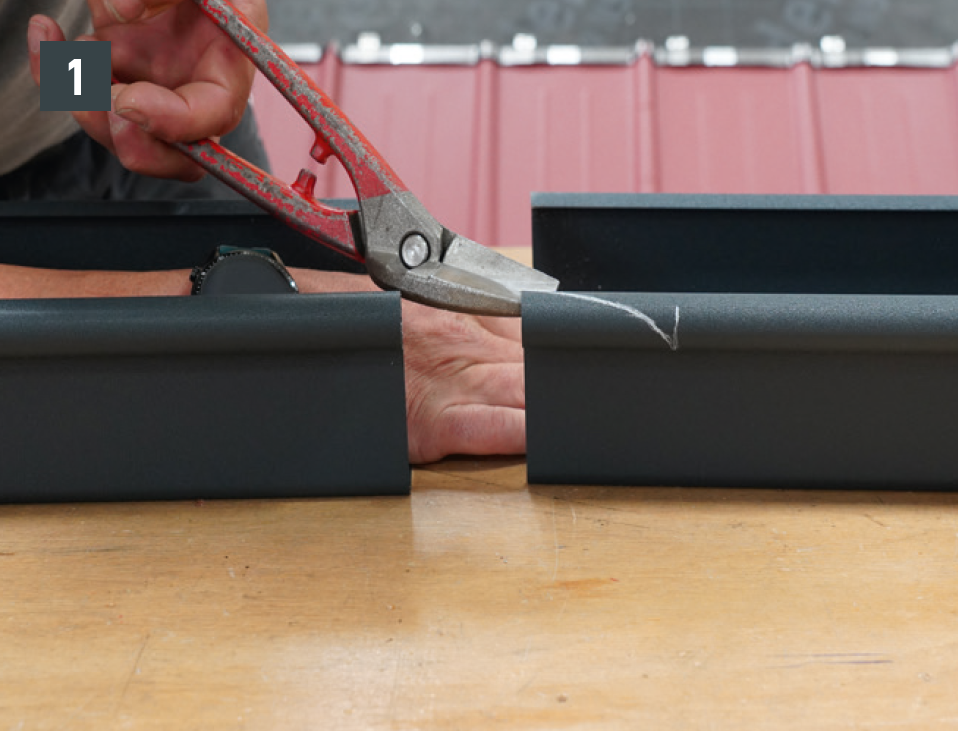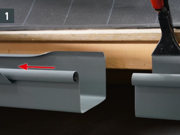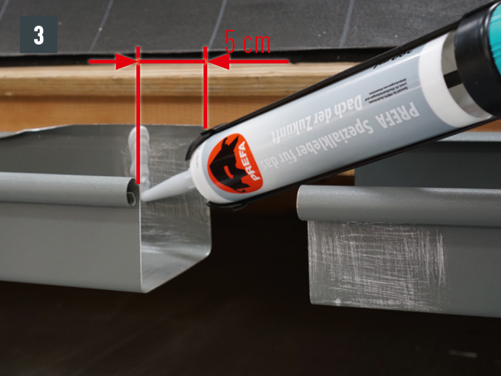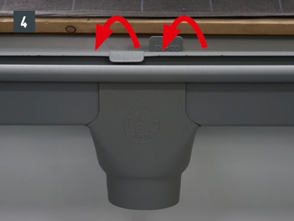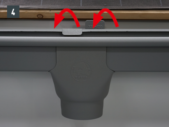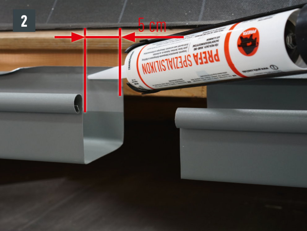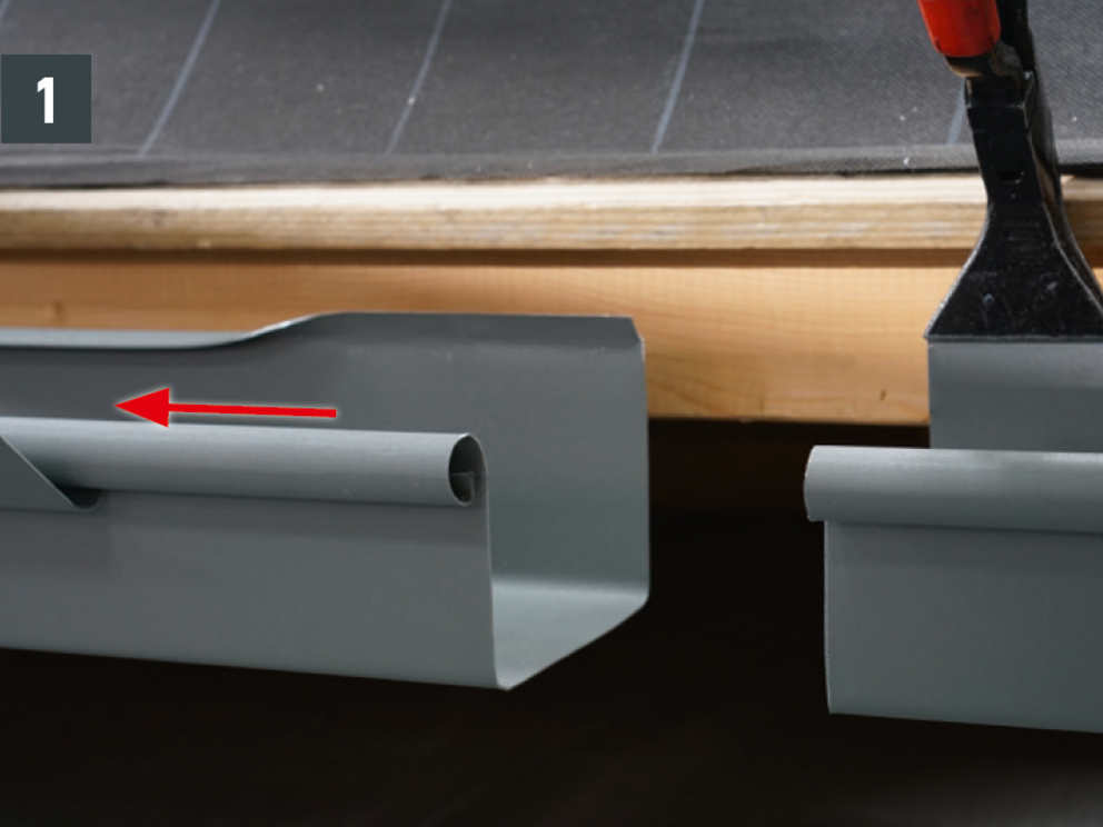 A négyszögszelvényű ereszcsatorna és a négyszögszelvényű ereszcsatorna szeglet csatlakoztatásához az ereszcsatorna vulcninyitó nélküli változatát kell alkalmazni.