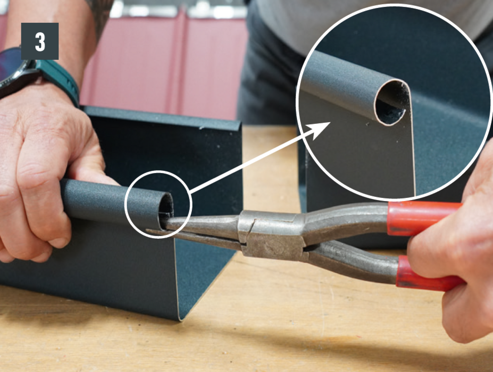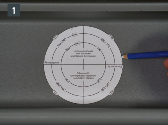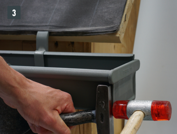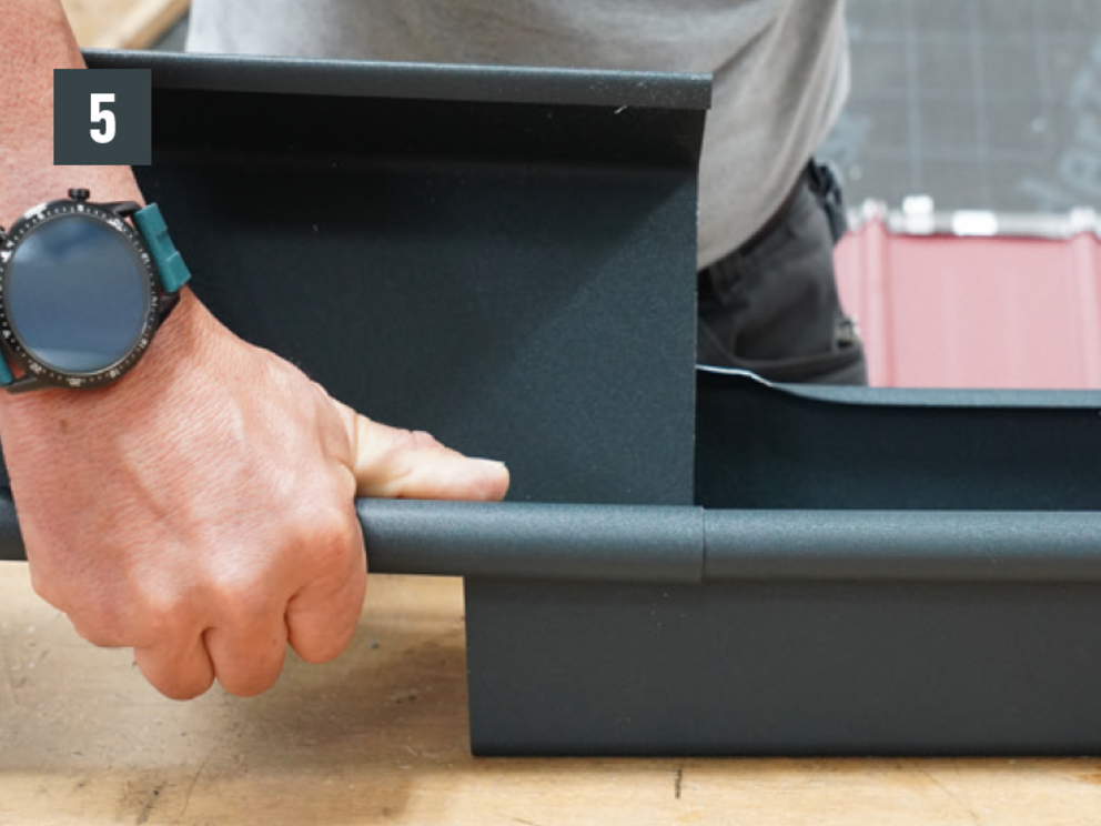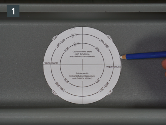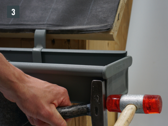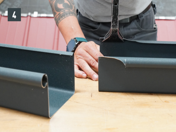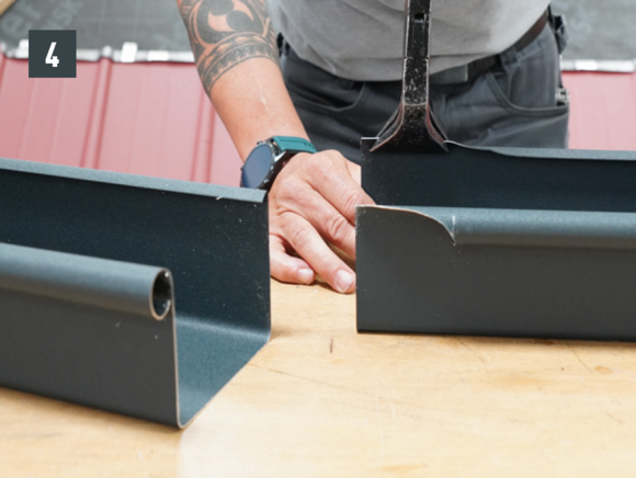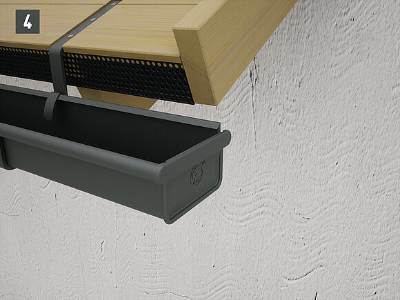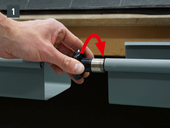 A négyszögszelvényű ereszcsatorna és a négyszögszelvényű ereszcsatorna szeglet csatlakoztatásához az ereszcsatorna vulcninyitó nélküli változatát kell alkalmazni.