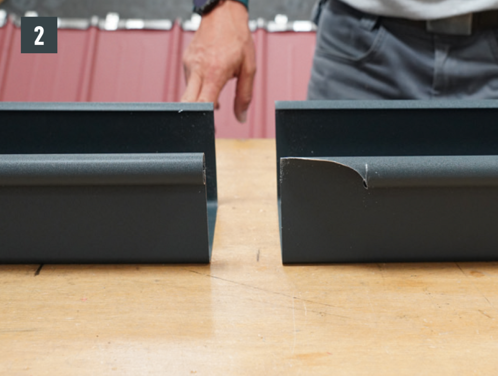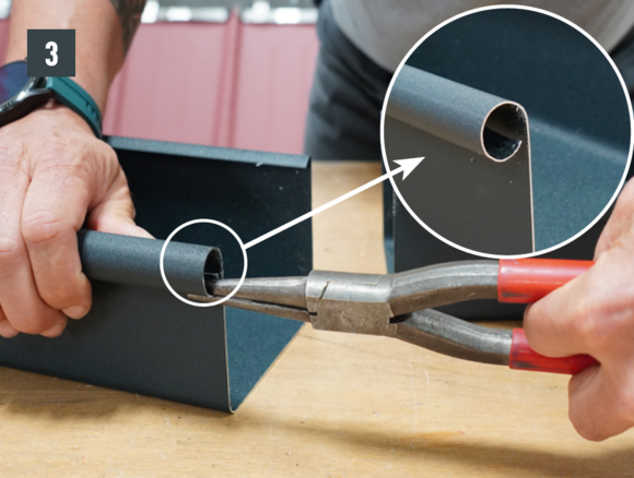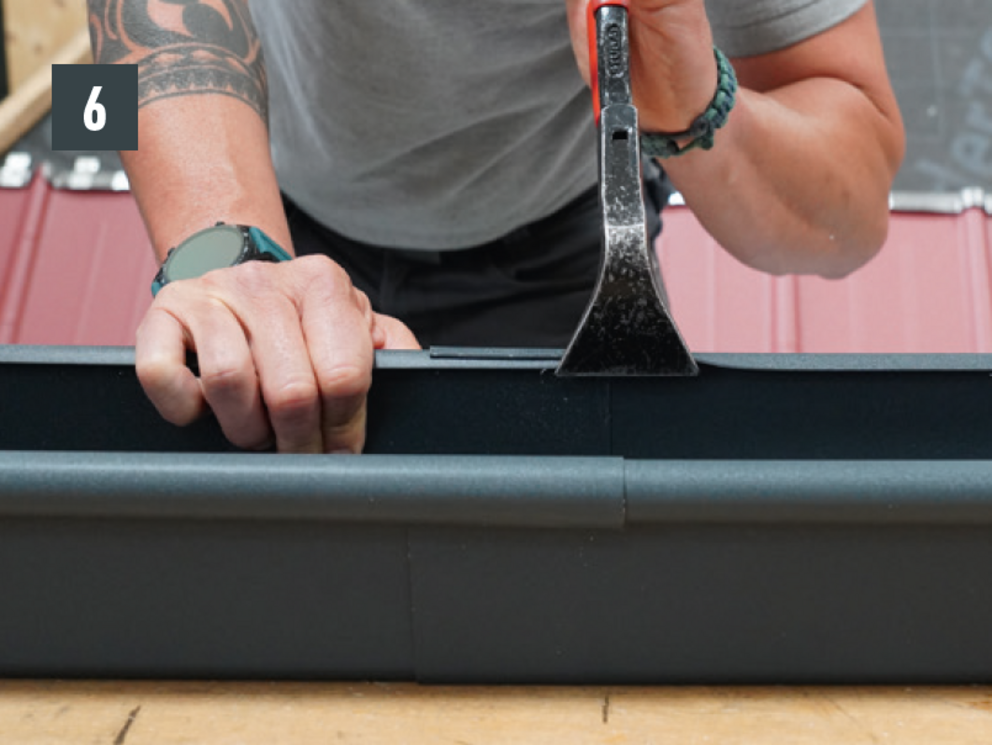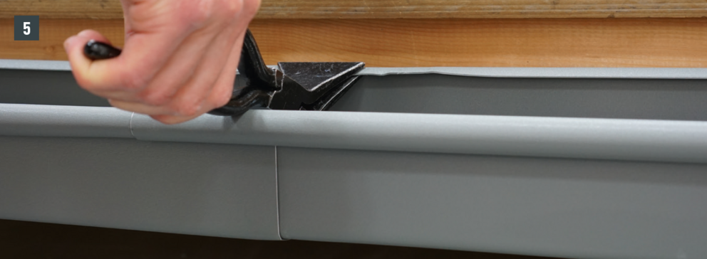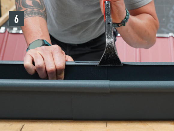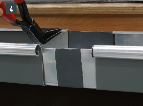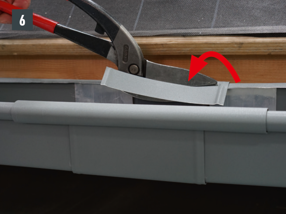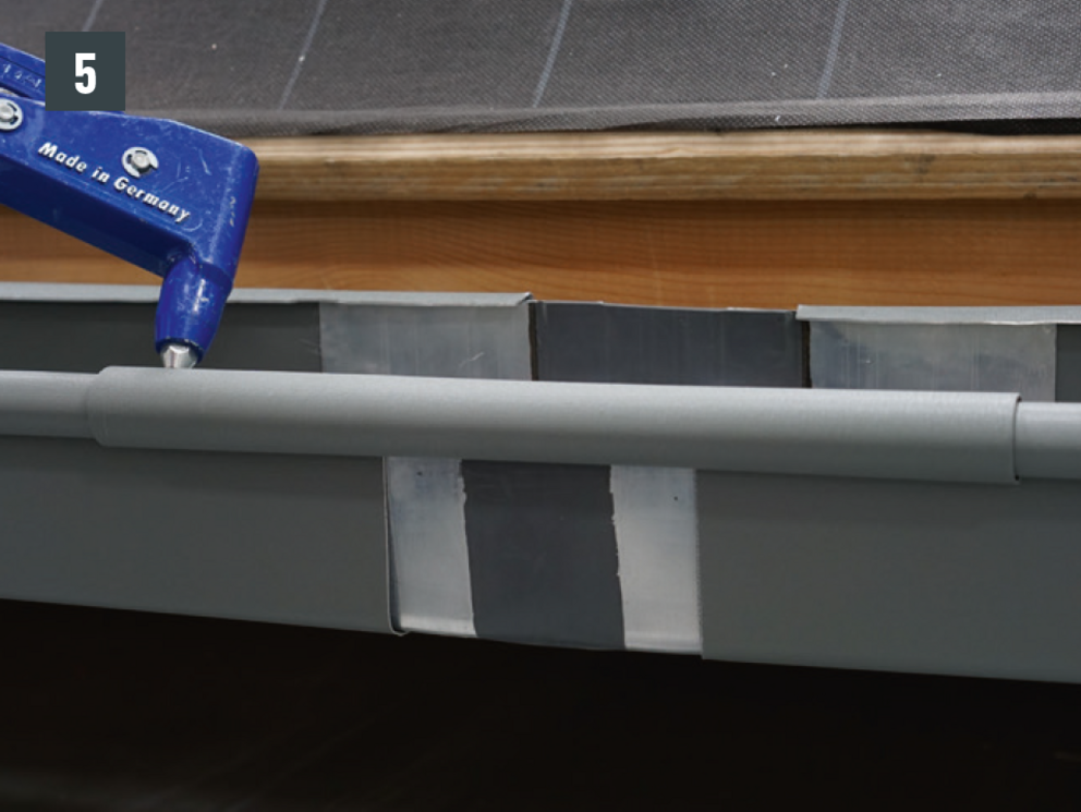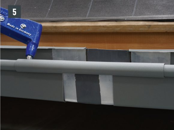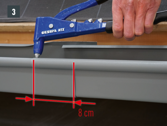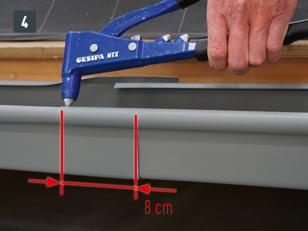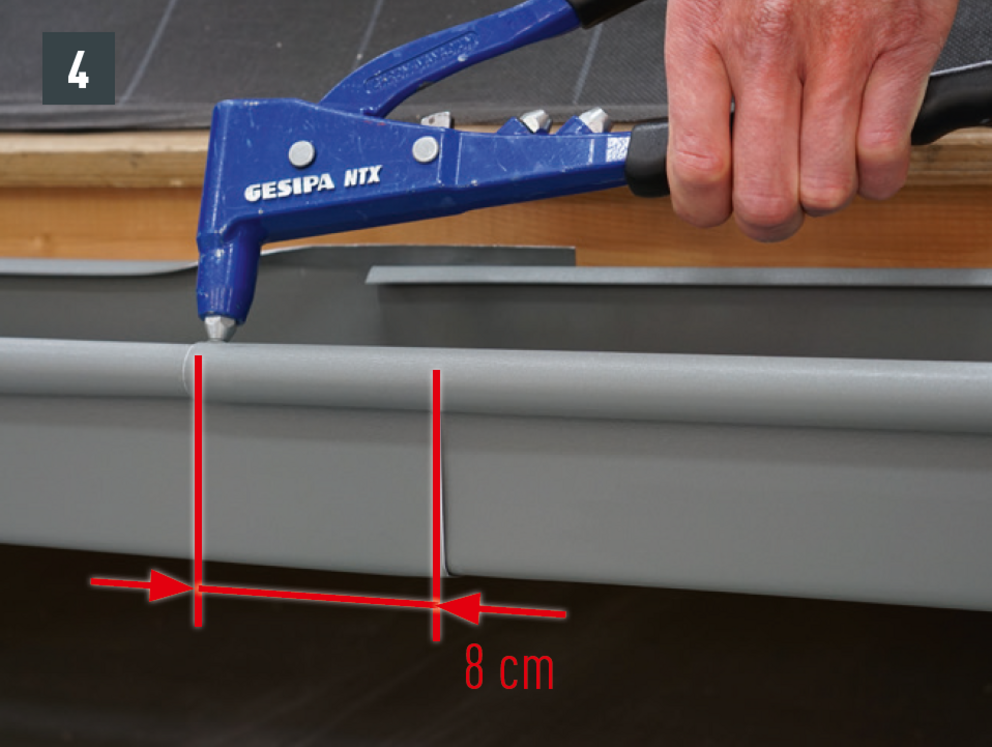 A külső csatornaperem takaróelemét ne szegecselje meg mindkét oldalon, mert az akadályozná az ereszcsatorna dilatációs hőmozgását.