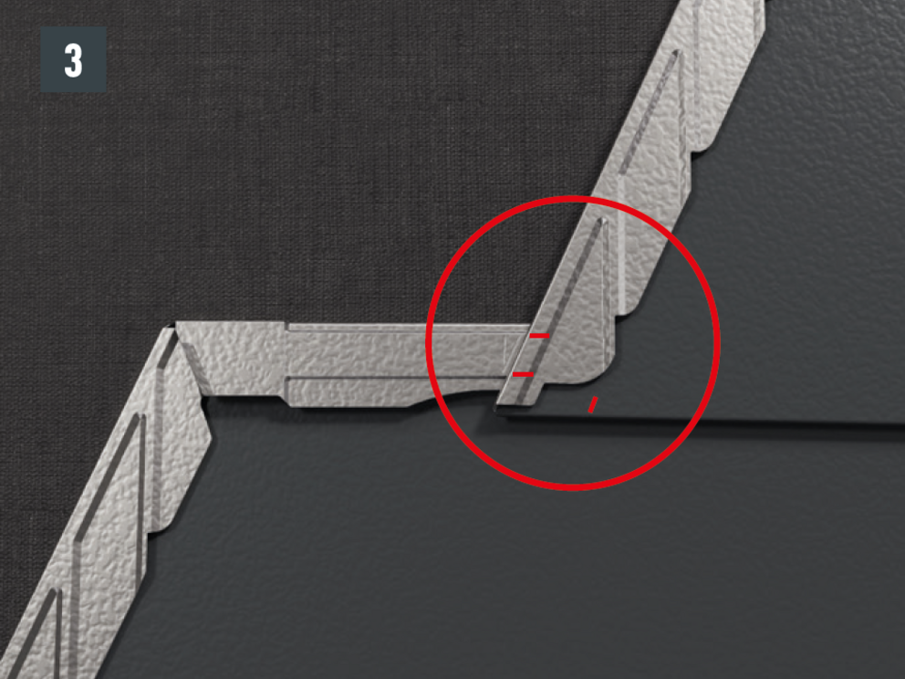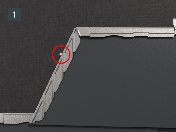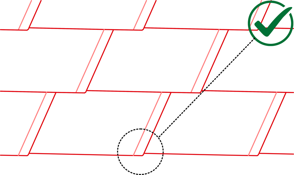 A soronkénti első DS.19 tetőfedő zsindely „túlhúzását” el kell kerülni. A kivitelezés során arról is győződjön meg, hogy a vápához való csatlakozásnál a zsindely felső visszahajtása szintén, teljes hosszában a kijelölt, eresszel párhuzamos vonalra feküdjön fel.