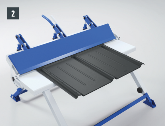 A PREFA ráncológép és a PREFA hajlítópad (1. és 2. ábra) lehetővé teszi az elemek gerinc-, él- és csatlakozólemezeknél történő egyszerű és gyors megmunkálását.