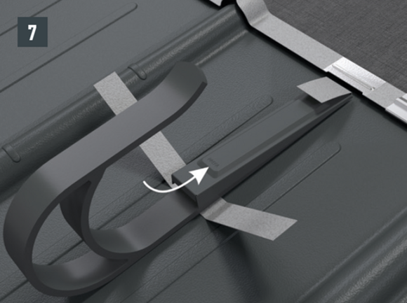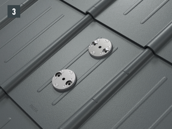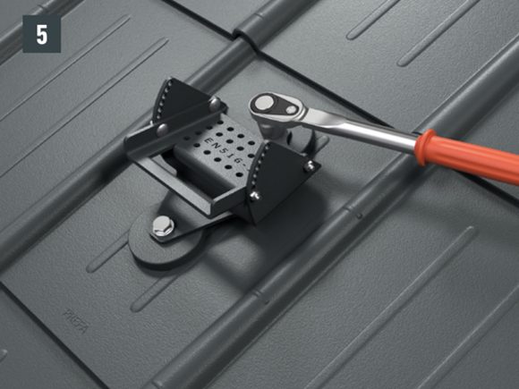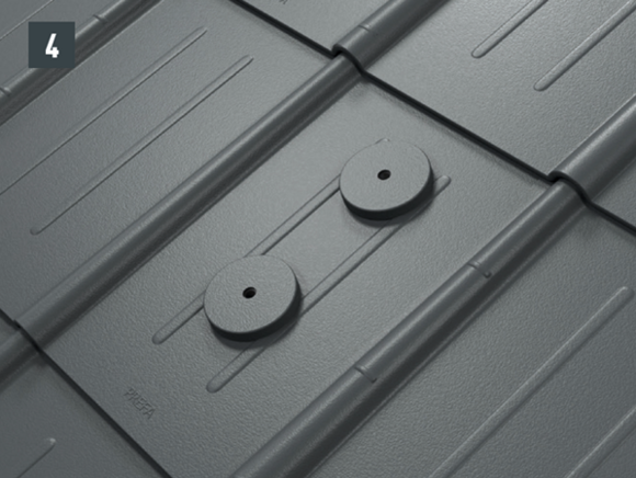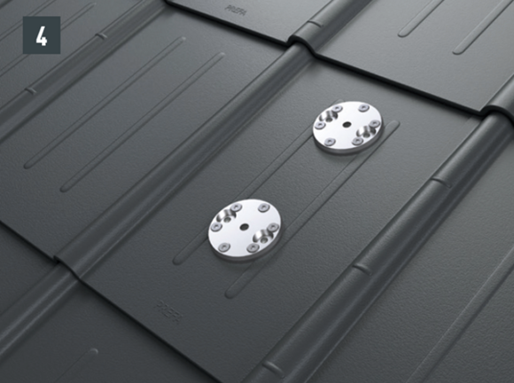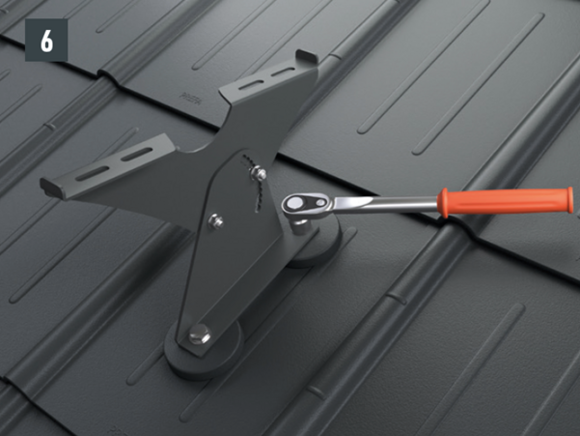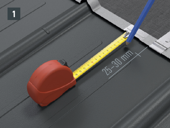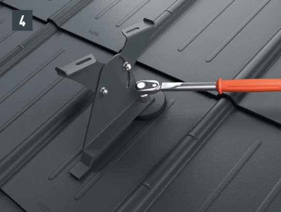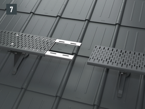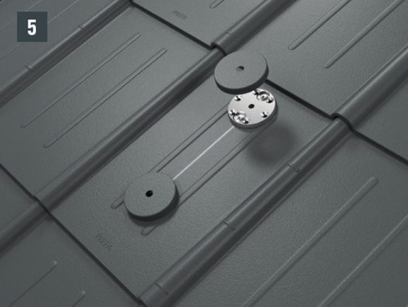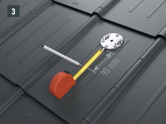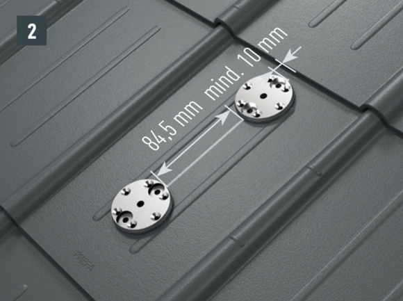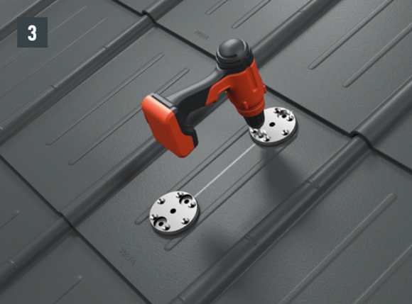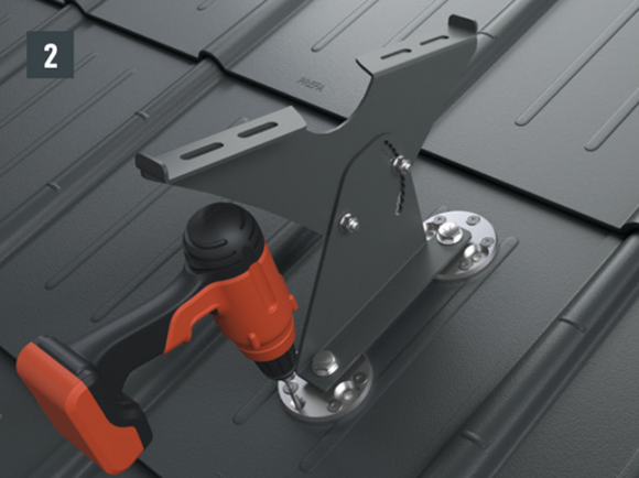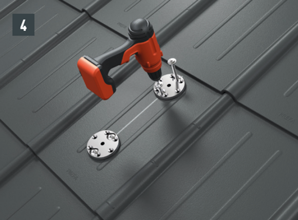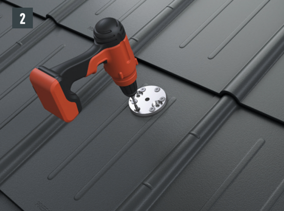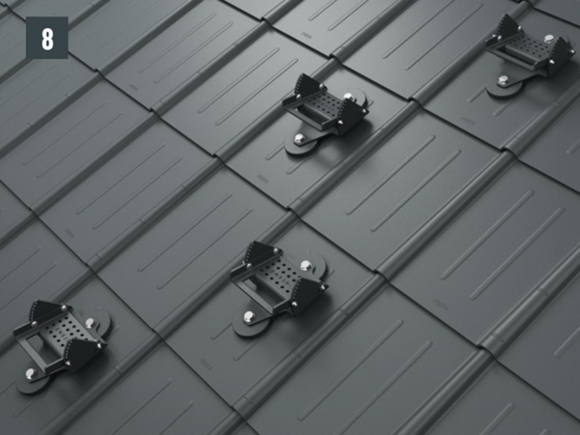 Az eredeti rögzítőcsavaroknak a teherhordó alátétszerkezetbe (szarufákba) legalább 80 mm mélyen be kell hatolniuk. A 29 × 29 tetőfedő rombusz, a 44 × 44 tetőfedő rombusz és a tetőfedő zsindely esetében alátétlemezt kell beépíteni.