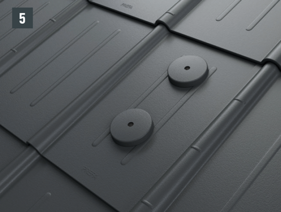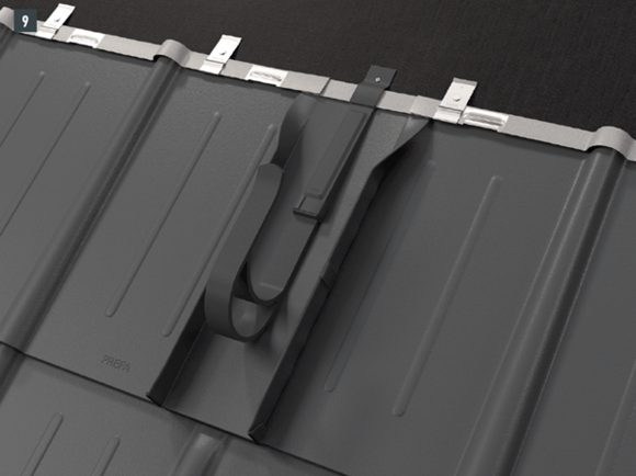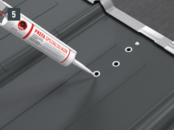 Minden PREFA tetőfedő rendszer esetében szükség lehet egy alátétlemez felszerelésére (pl. ha a szerelési területen korc vagy hullámcsúcs található