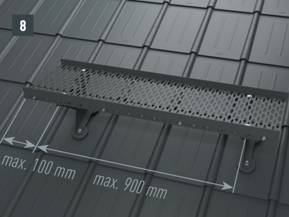 A szakszerű/megfelelő beépítés alapfeltétele egy, a vonatkozó szabványoknak/előírásoknak megfelelően kivitelezett PREFA tetőfedő rendszer és egy teherhordó fa alátétszerkezet (min. 8/8 cm-es szarufák min. 24 mm-es teljes deszkázattal, min. 10 × 14 cm szarufa feletti szigetelésnél). |